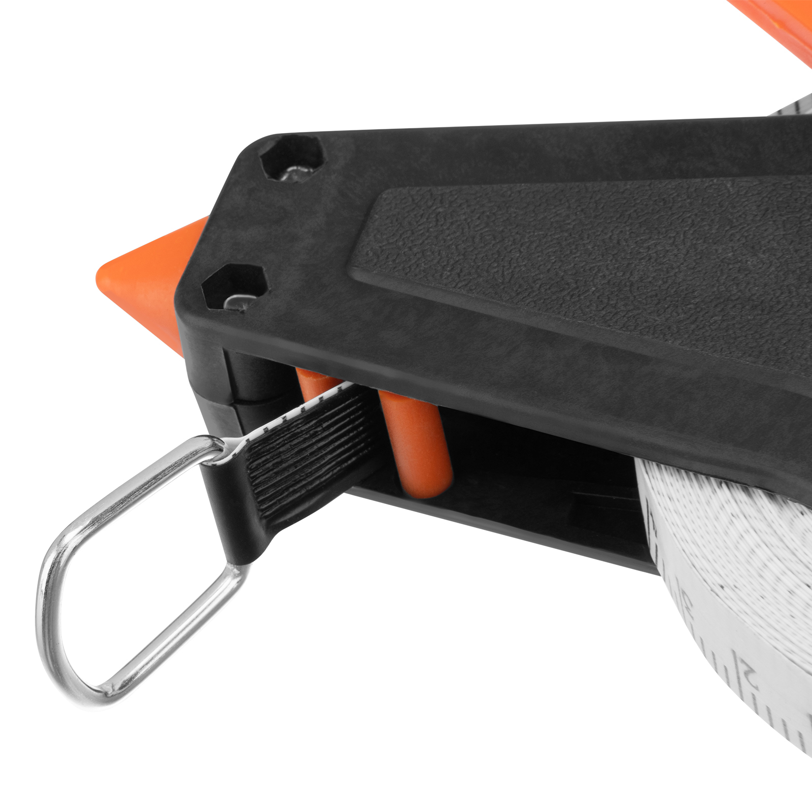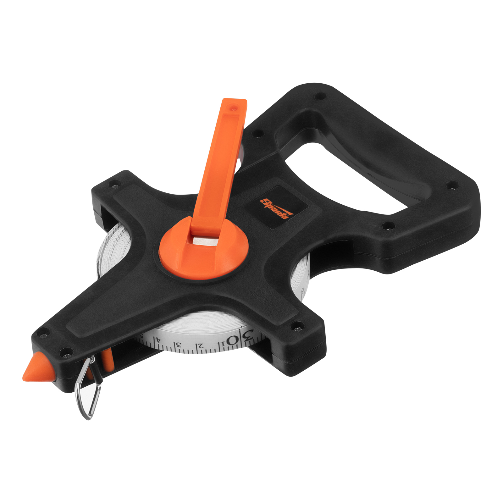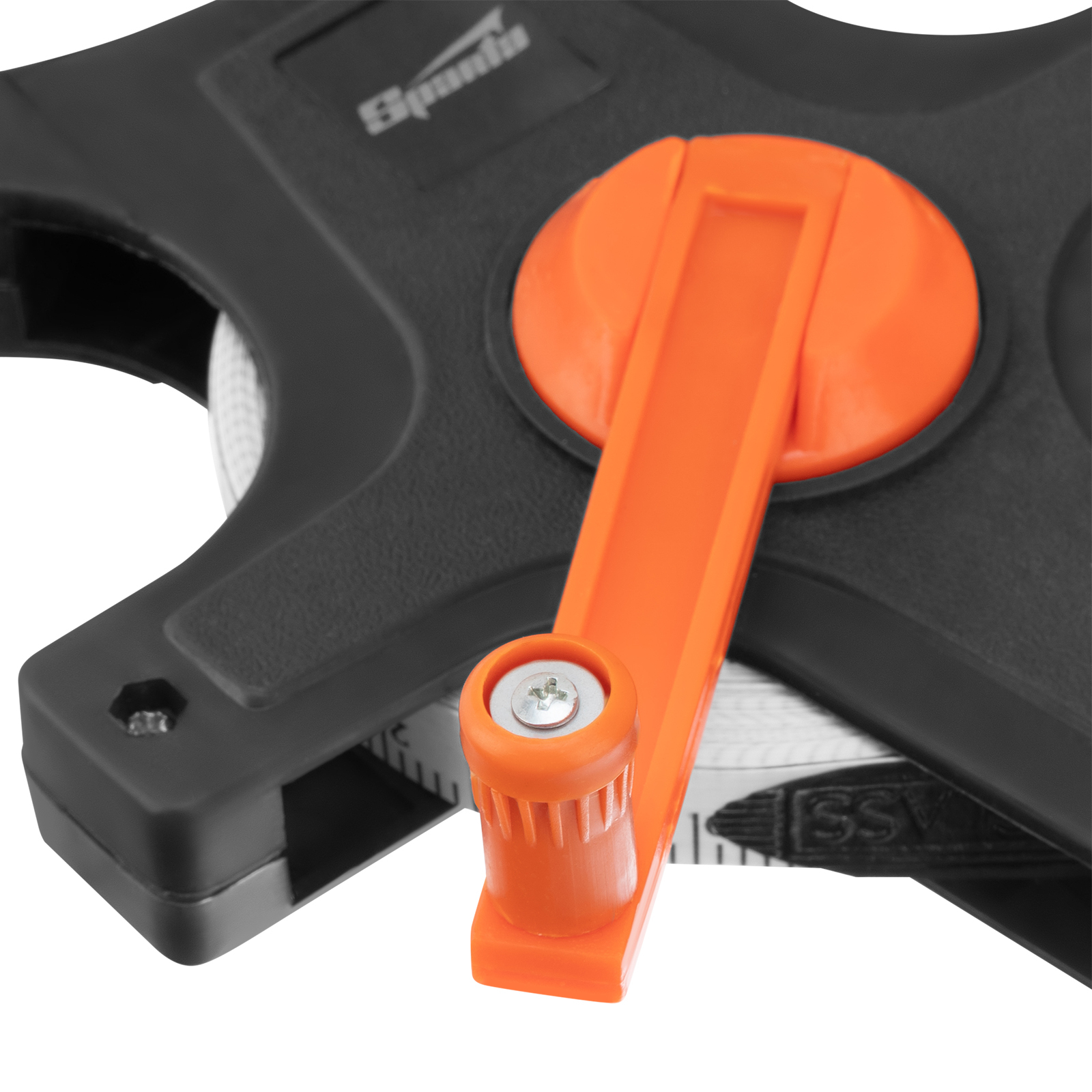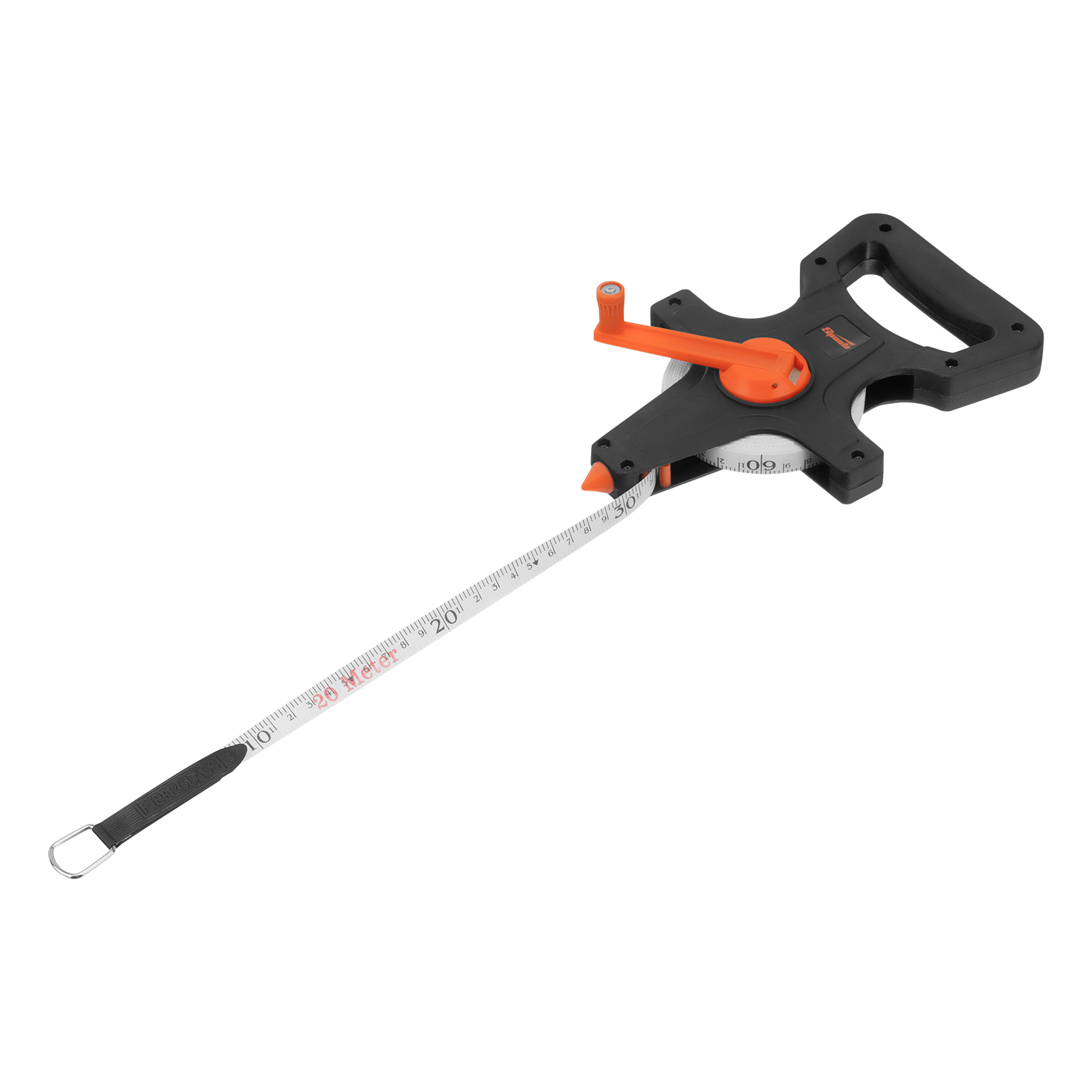 - Рулетка позволяет быстро смотать ленту благодаря удобной удлиненной ручке возвратного механизма.