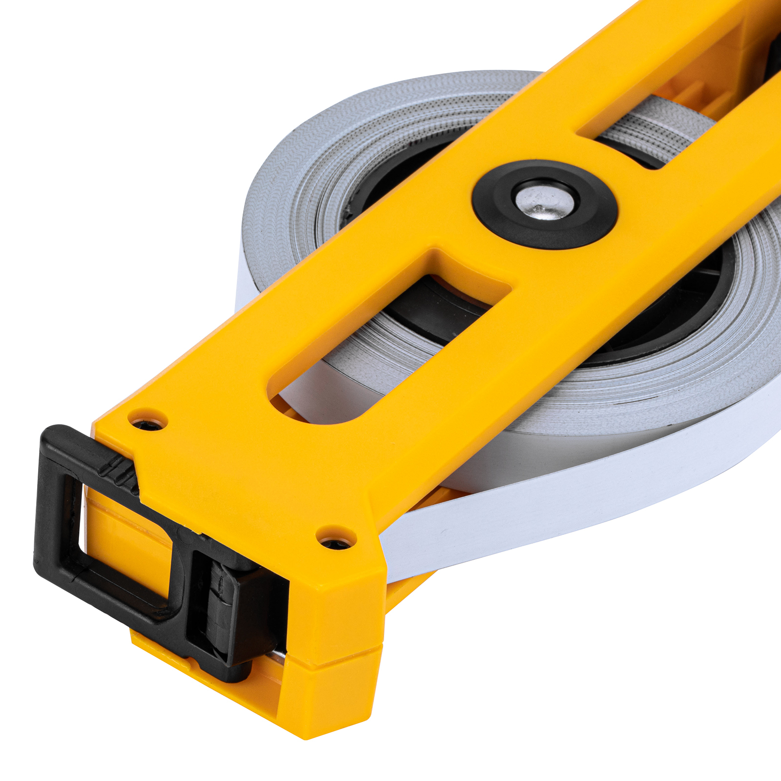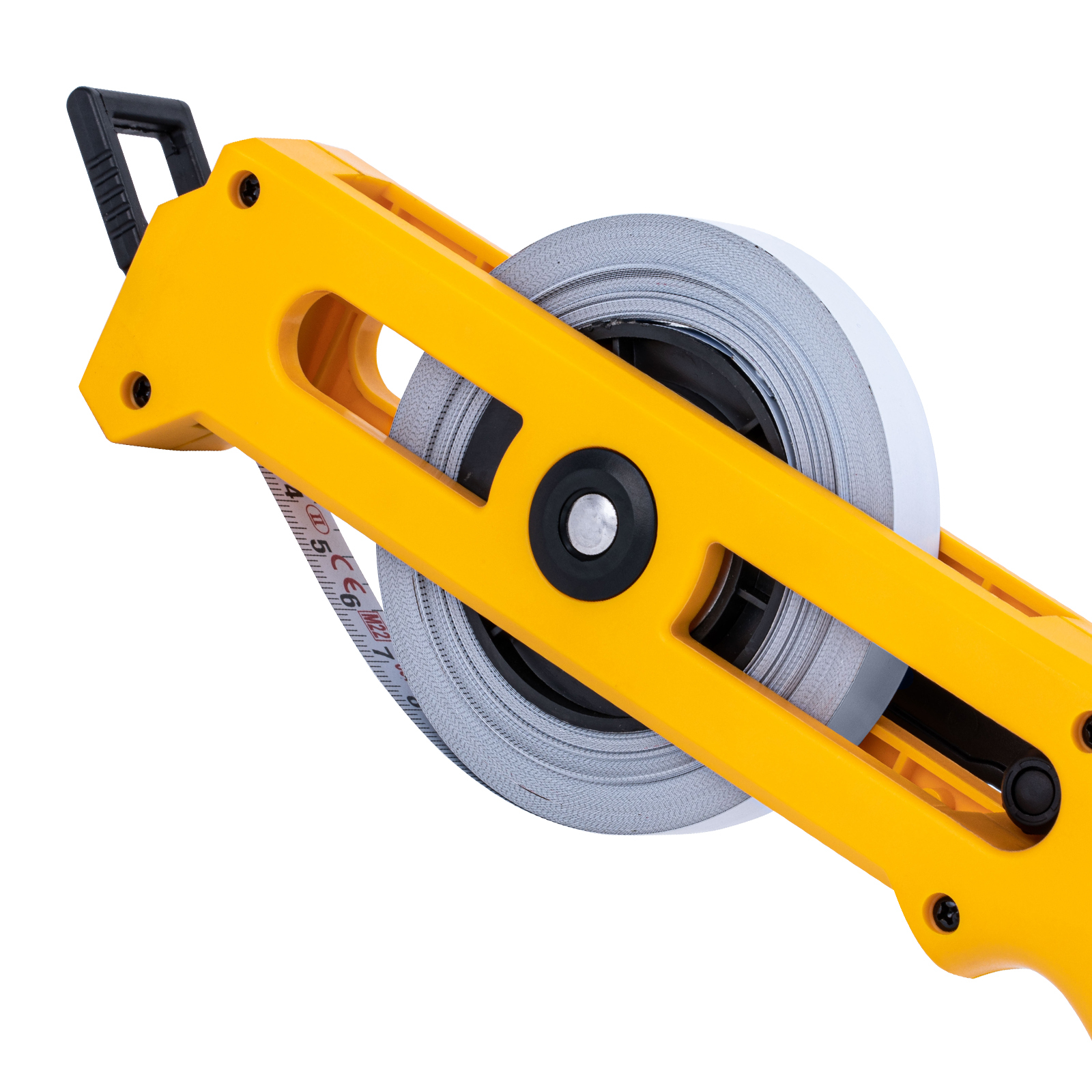 - Удобная фиксация измерительной ленты на объекте — рулетка оснащена кольцом с подвижным зацепом.