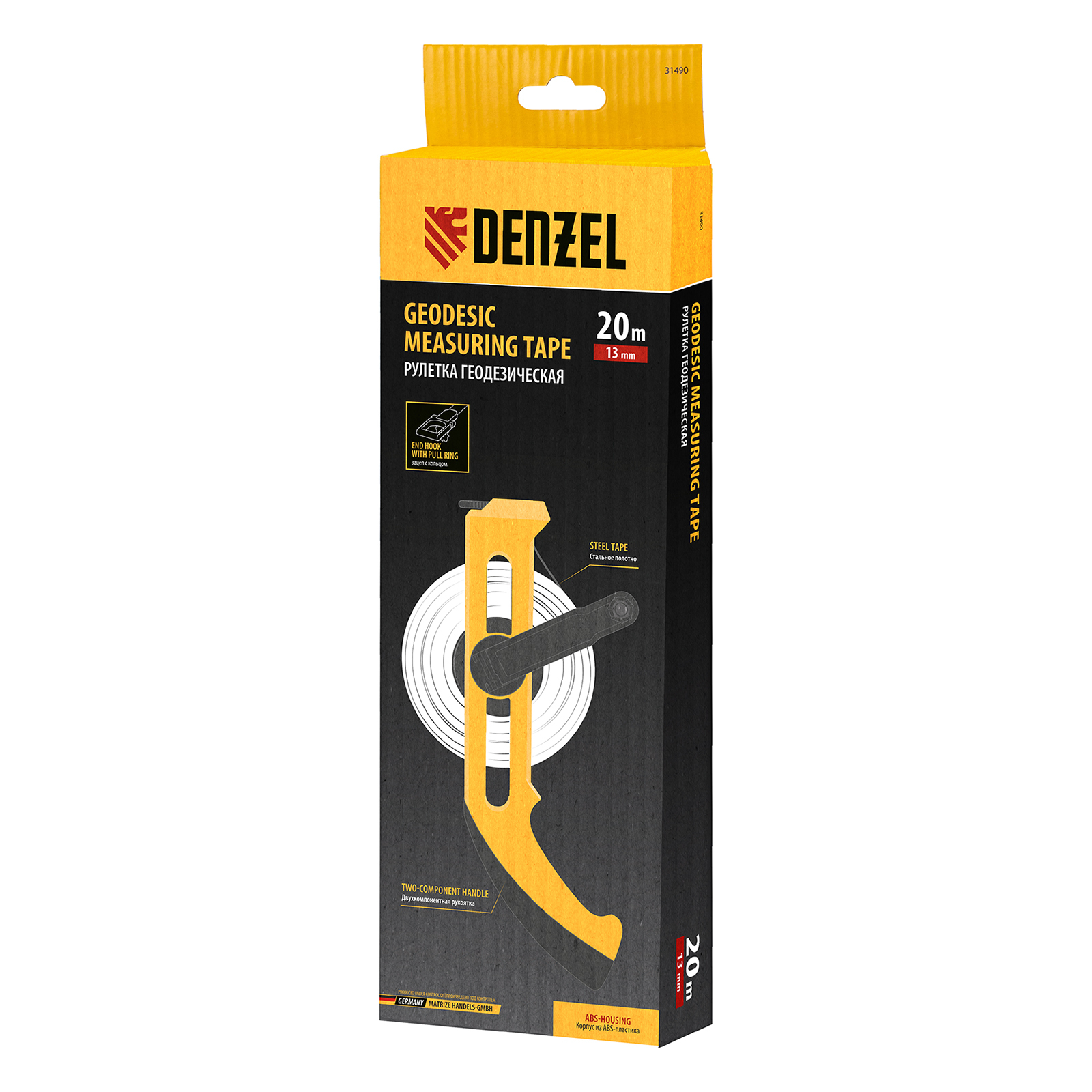 Рулетка геодезическая 20 м х 13 мм, открытый корпус, металлическая лента Denzel