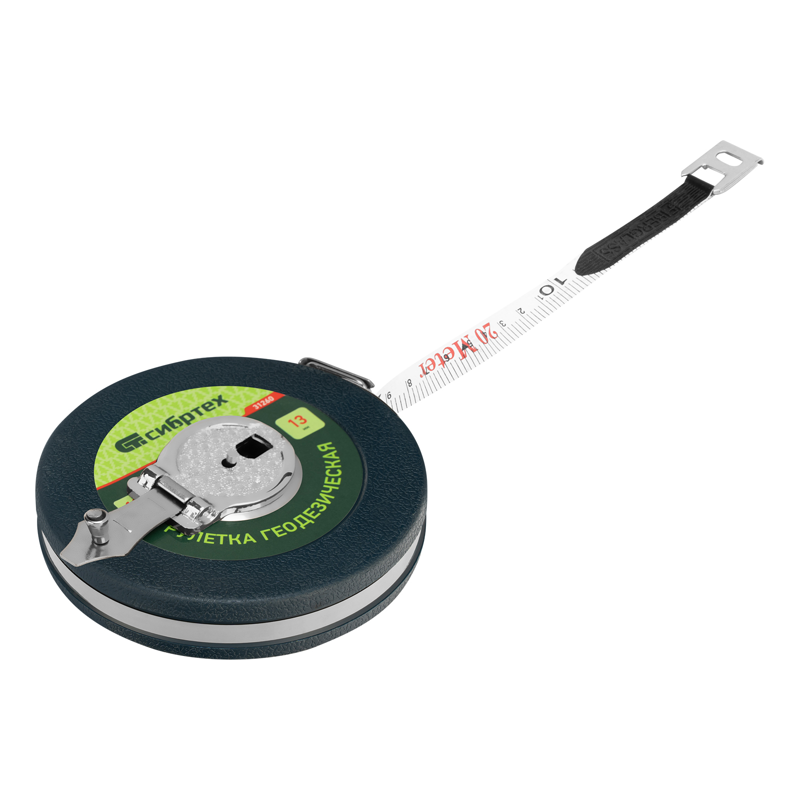 Рулетка геодезическая 20 м х 13 мм, закрытый корпус, фибергласовая лента Сибртех