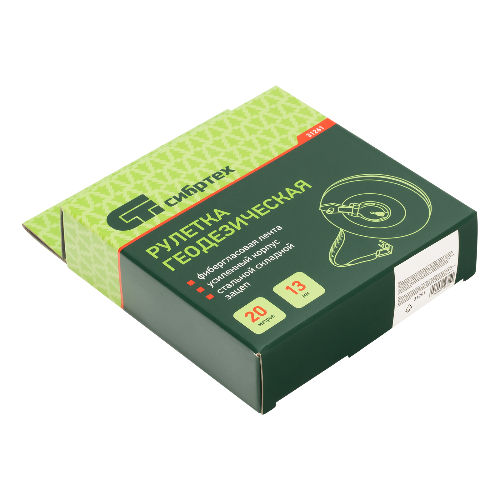 Геодезическая рулетка Сибртех 31261 с измерительным полотном длиной 20 м и шириной 13 мм, в закрытом корпусе, с фибергласовой лентой, — измерительный инструмент для определения расстояний и проведения замеров различных объектов. Рулетка пригодится при выполнении строительных и ремонтных работ, обмеров садовых участков, а также при формировании ландшафтов.