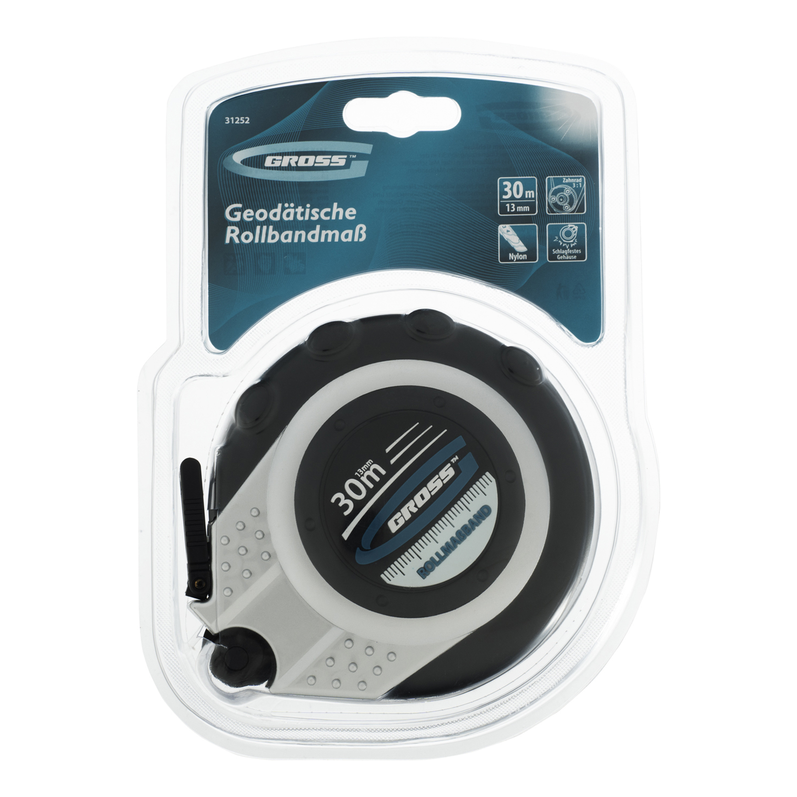Рулетка геодезическая 30 м х 13 мм, закрытый корпус, металлическая лента, нейлон Gross