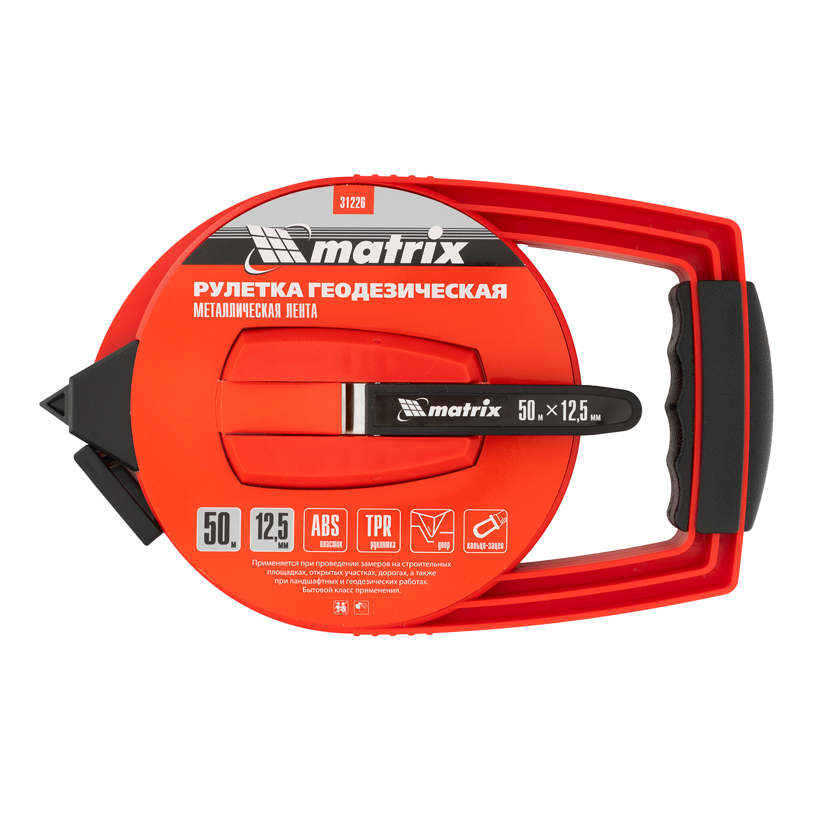 Рулетка геодезическая, 50 м х 12,5 мм, металлическая лента, закрытый корпус Matrix
