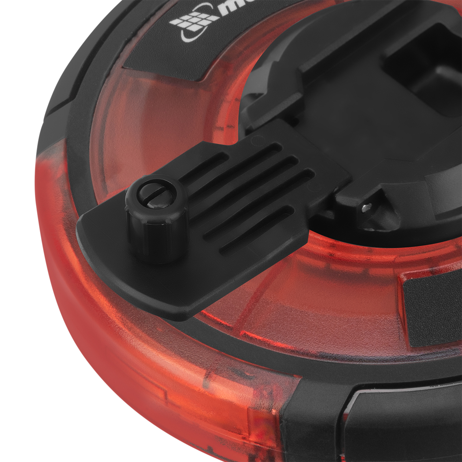 - Быстрый возврат полотна — планетарный возвратный механизм имеет коэффициент передачи 3:1, поэтому лента сматывается втрое быстрее, чем у моделей с обычным механизмом.