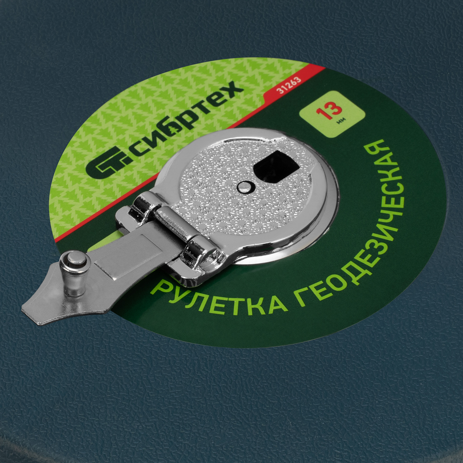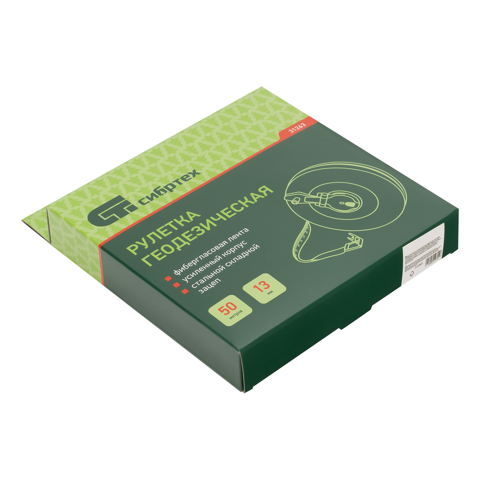 Геодезическая рулетка Сибртех 31263 с измерительным полотном длиной 50 м и шириной 13 мм, в закрытом корпусе, с фибергласовой лентой, — измерительный инструмент для определения расстояний и проведения замеров различных объектов. Рулетка пригодится при выполнении строительных и ремонтных работ, обмеров садовых участков, а также при формировании ландшафтов.