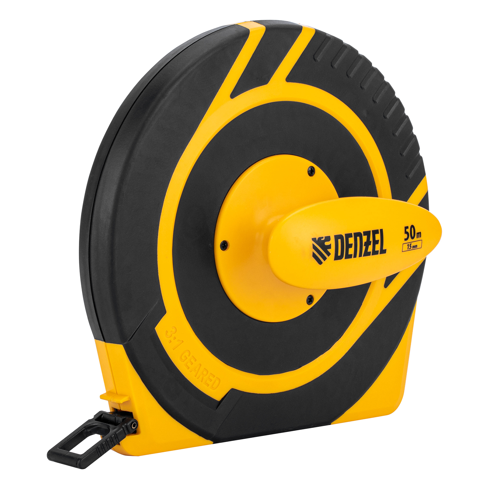 Рулетка геодезическая 50 м х 15 мм, закрытый корпус, фиберглассовая лента Denzel
