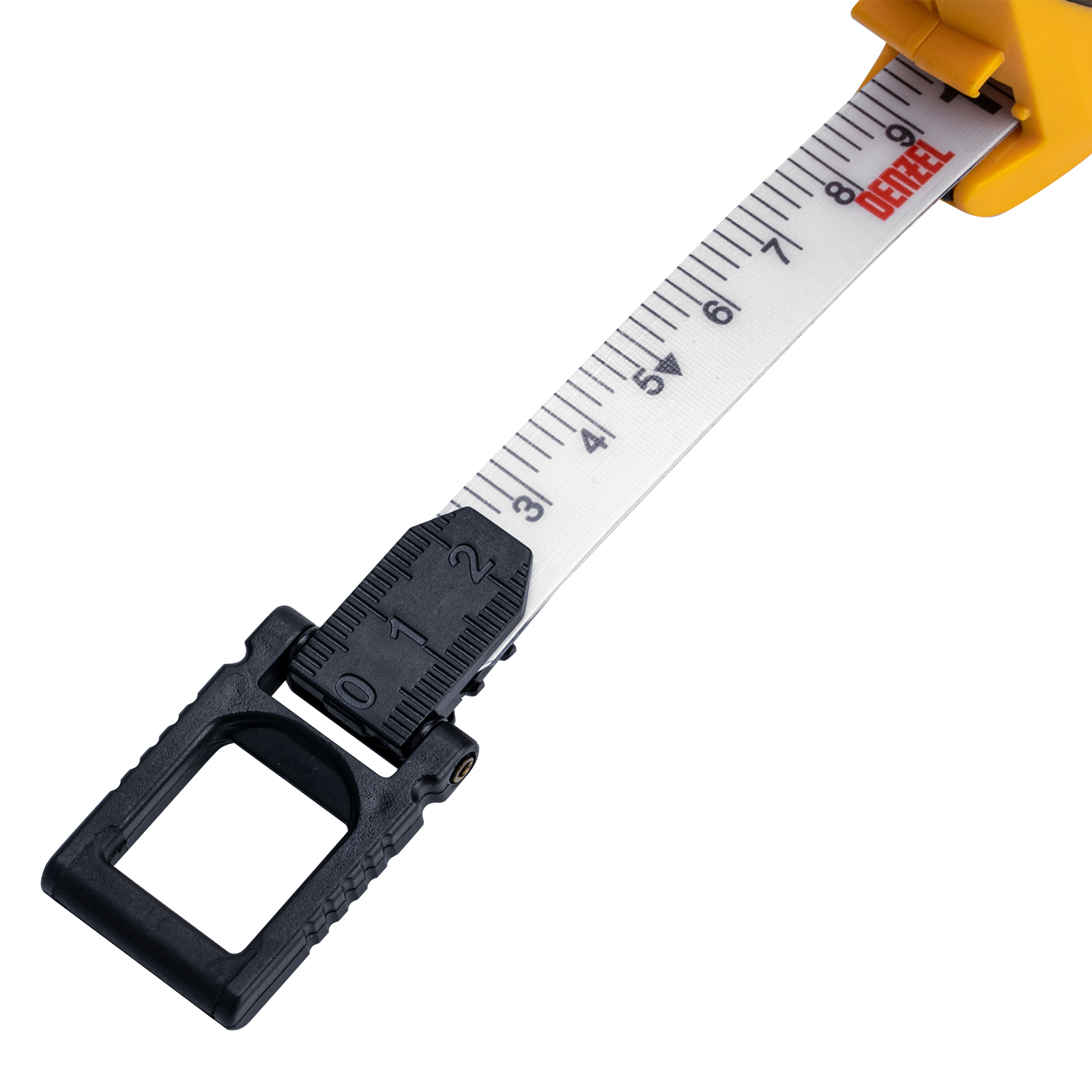- Быстрое снятие показаний — на измерительную ленту нанесена двусторонняя шкала, упрощающая выполнение измерений.