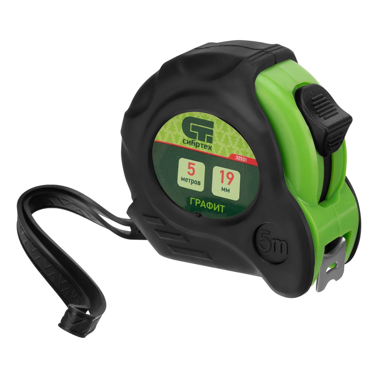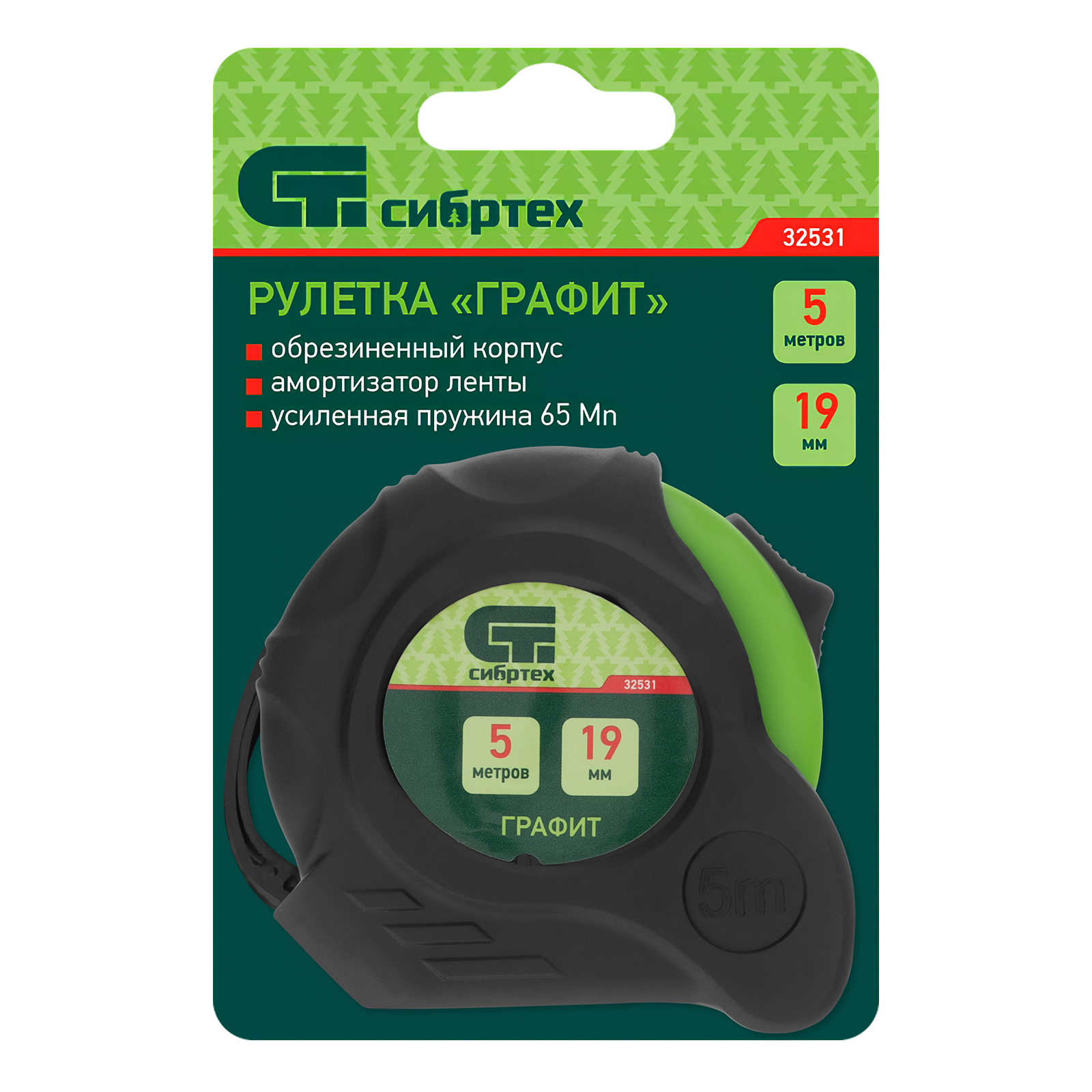 Рулетка Графит,обрезиненный корпус,амортизатор,5 м х 19 мм Сибртех
