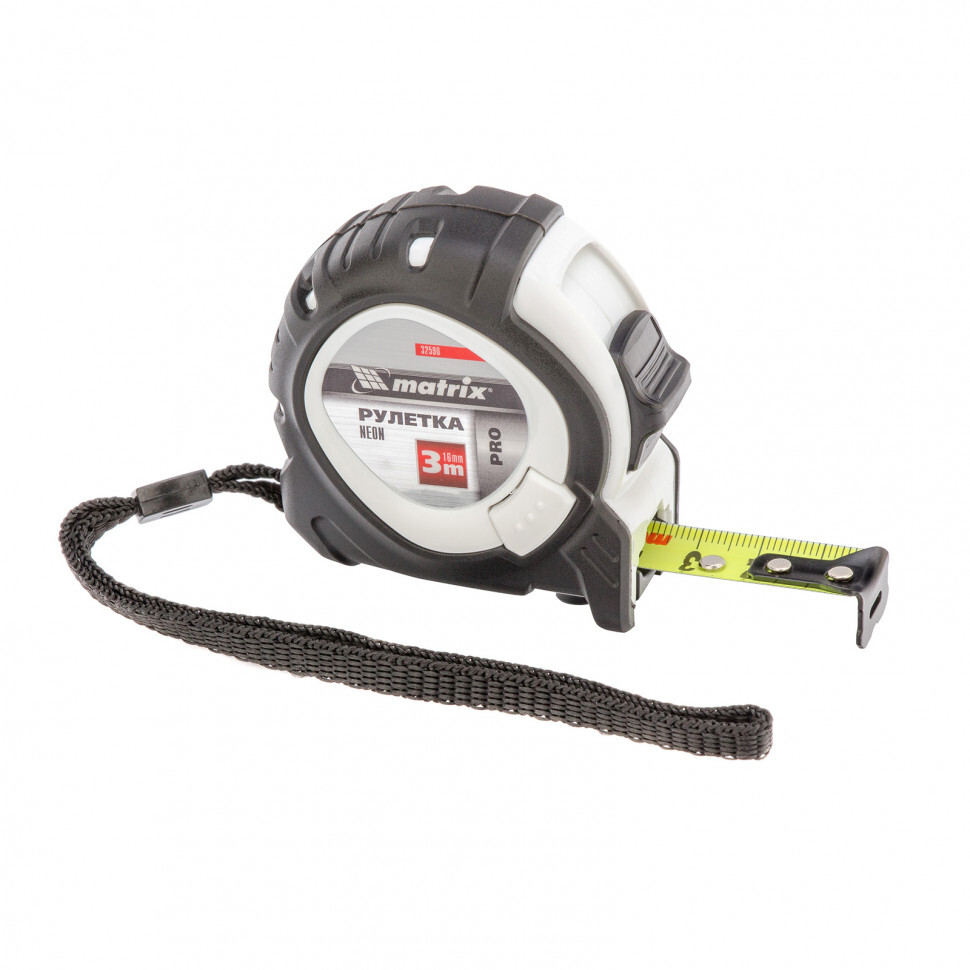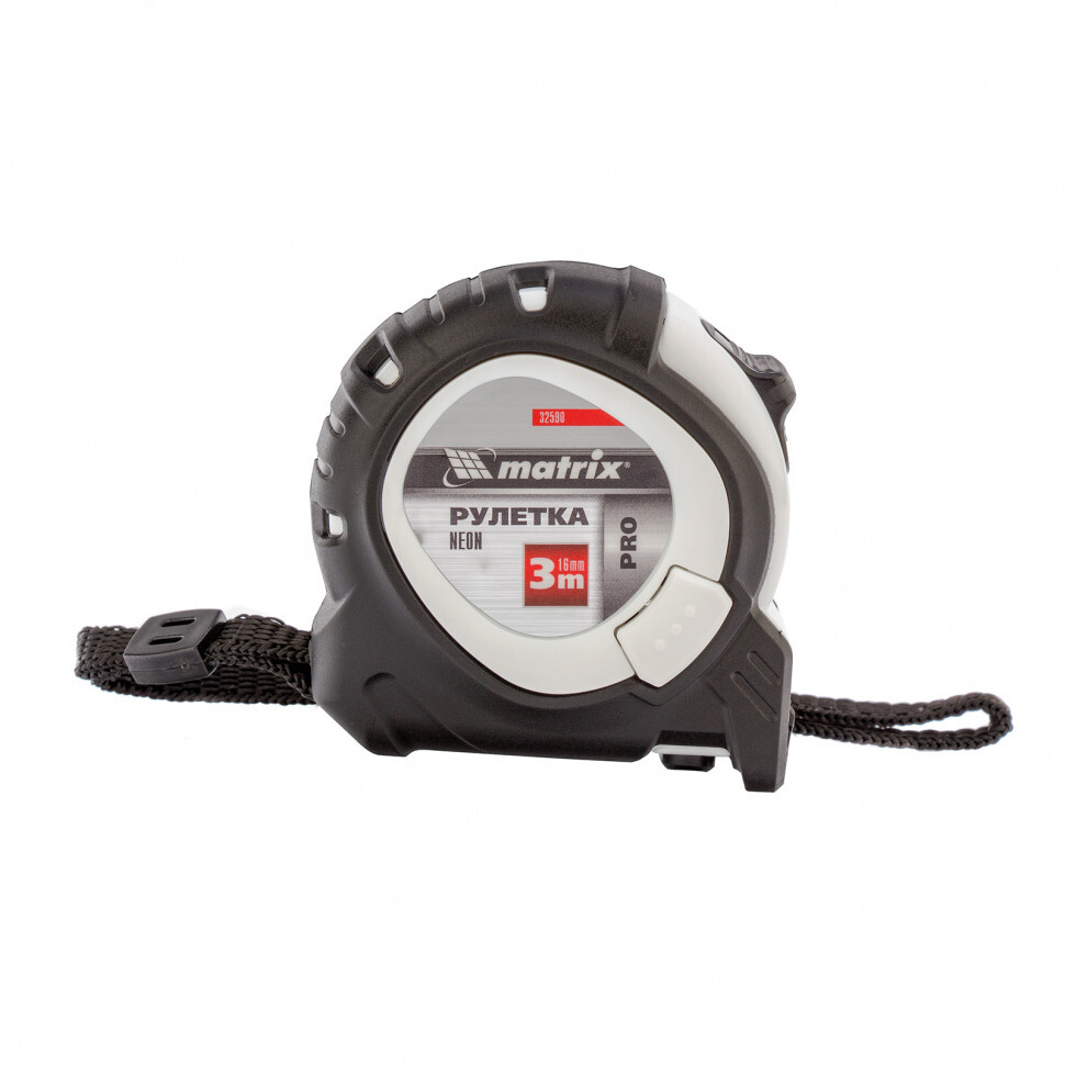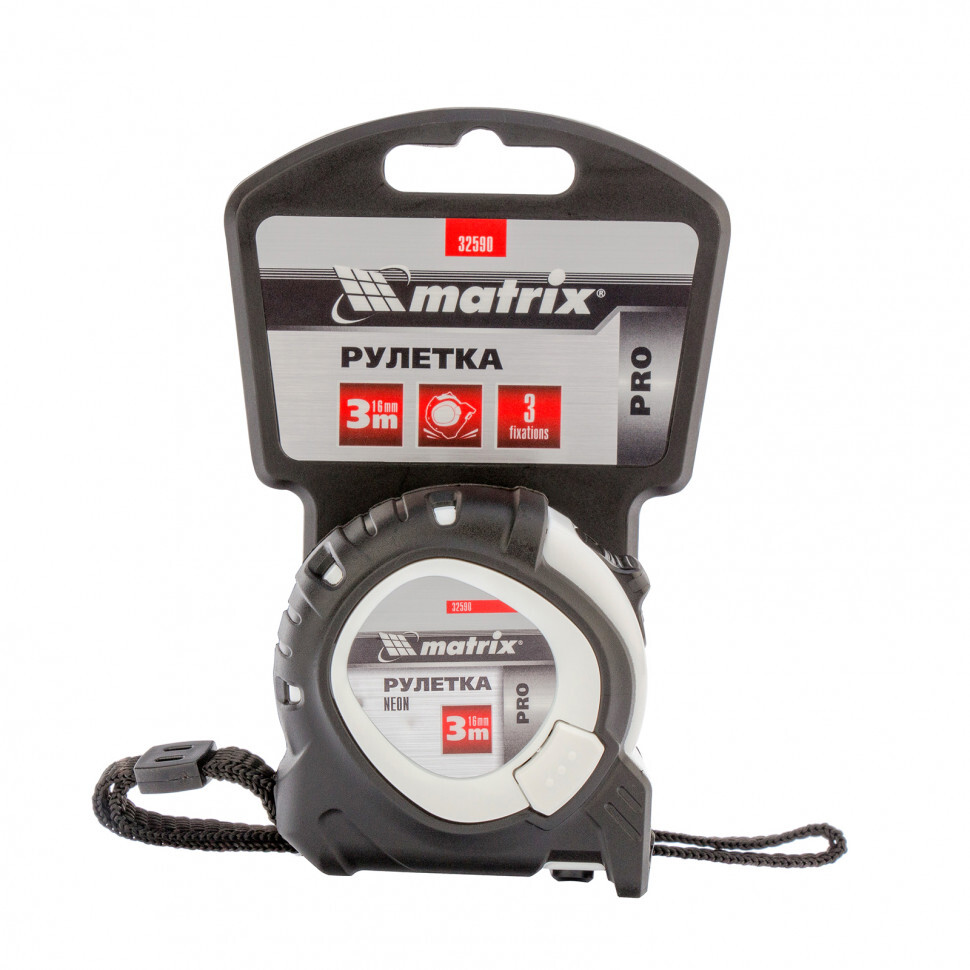 Рулетка Neon,3 м x 16 мм,обрезиненный корпус,3 фиксации,Pro Matrix