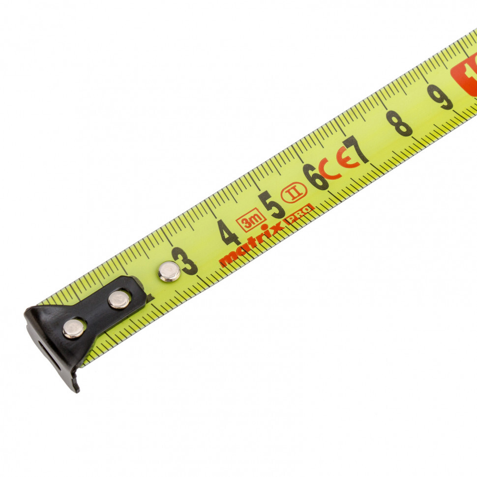 Рулетка Matrix PRO Neon 32590 в обрезиненном корпусе, с 3 механизмами фиксации ленты длиной 3 м и шириной 16 мм, служит для определения расстояний и размеров различных предметов. Крупные цифры на матовом желто-зеленом полотне хорошо видны, что облегчает считывание результатов. Измерительное полотно можно зафиксировать на нужной отметке при помощи стопора или одной из двух кнопок-пауз — это удобно при проведении большого количества замеров. Рулетка предназначена для выполнения профессиональных и бытовых измерительных работ.
