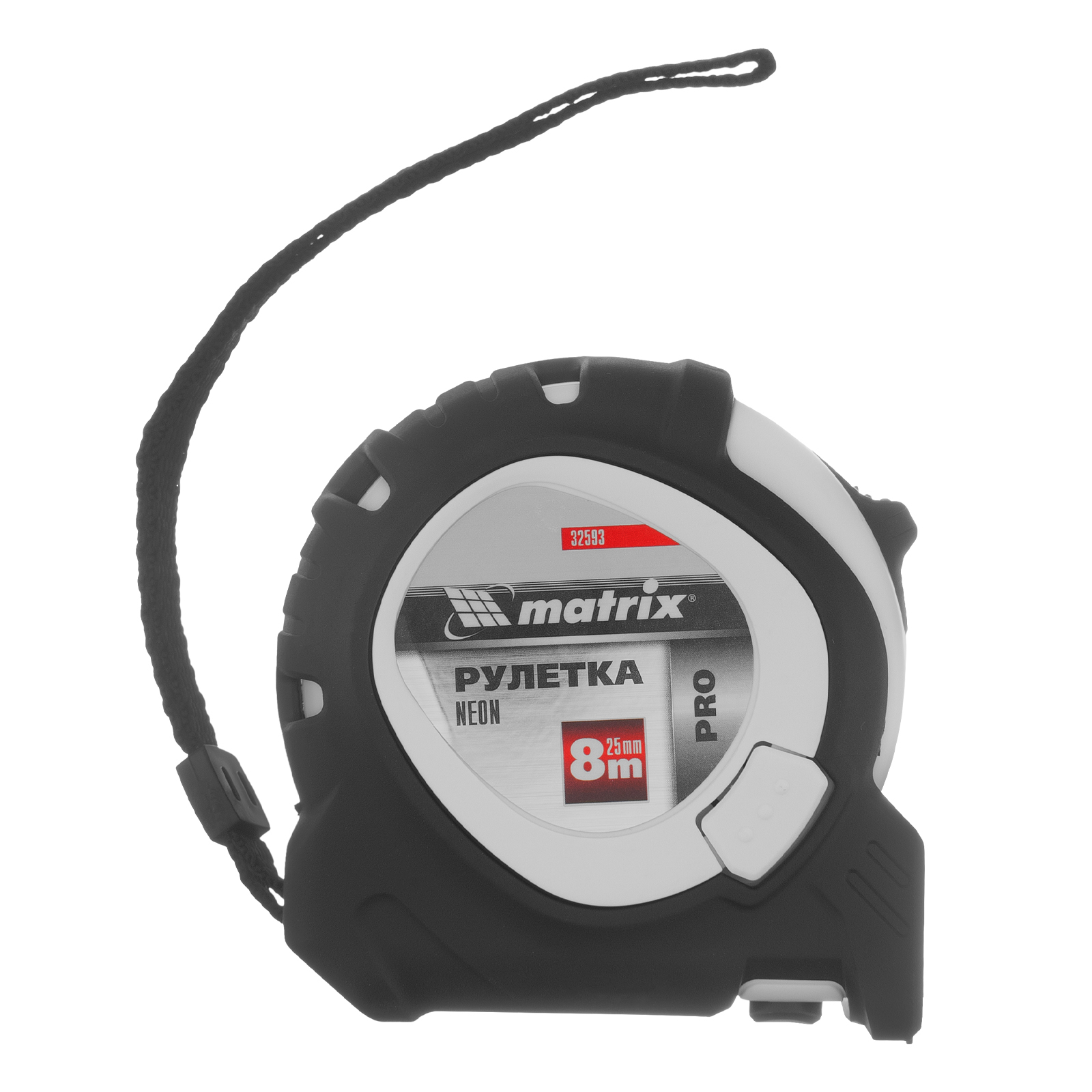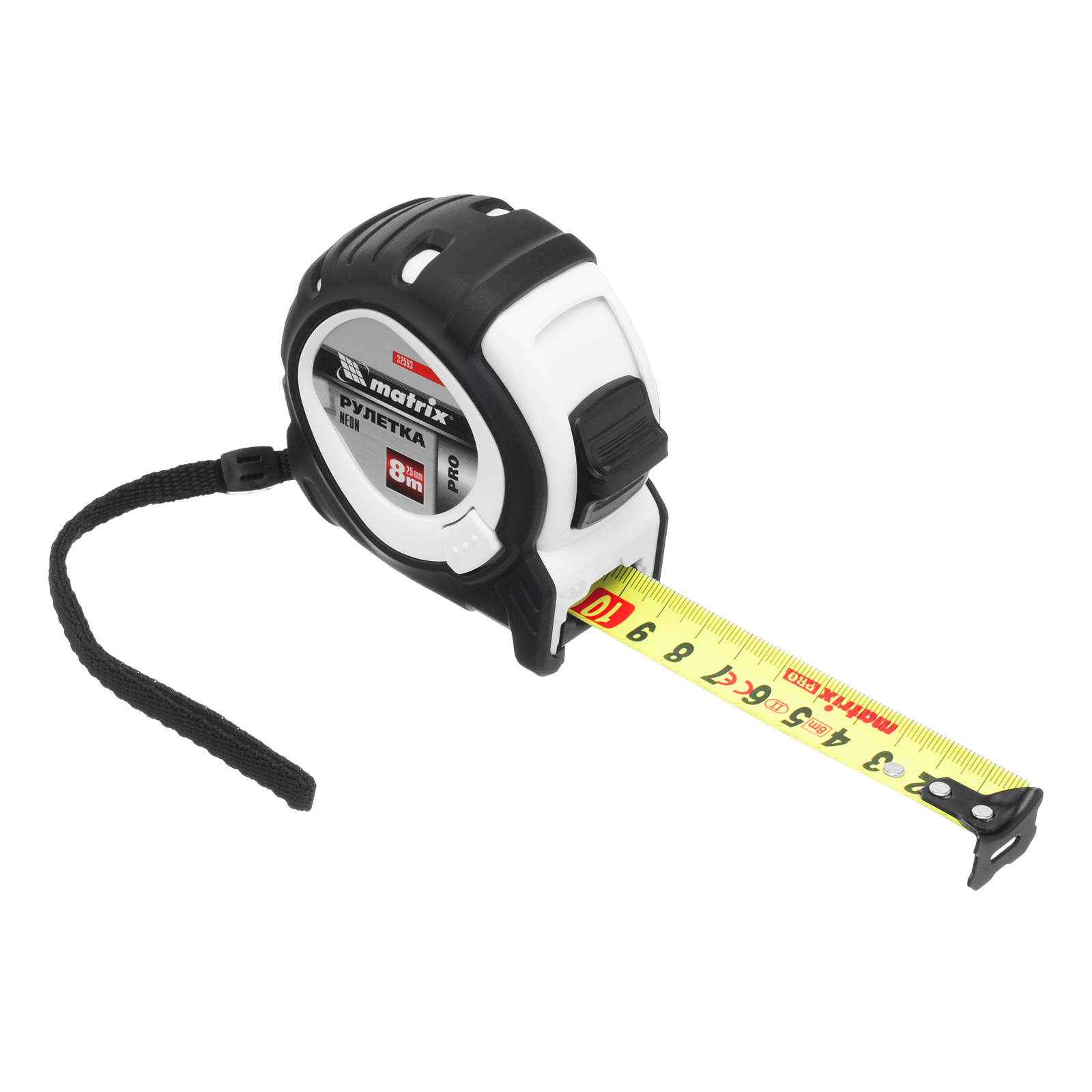Рулетка Neon,8 м x 25 мм,обрезиненный корпус,3 фиксации,Pro Matrix