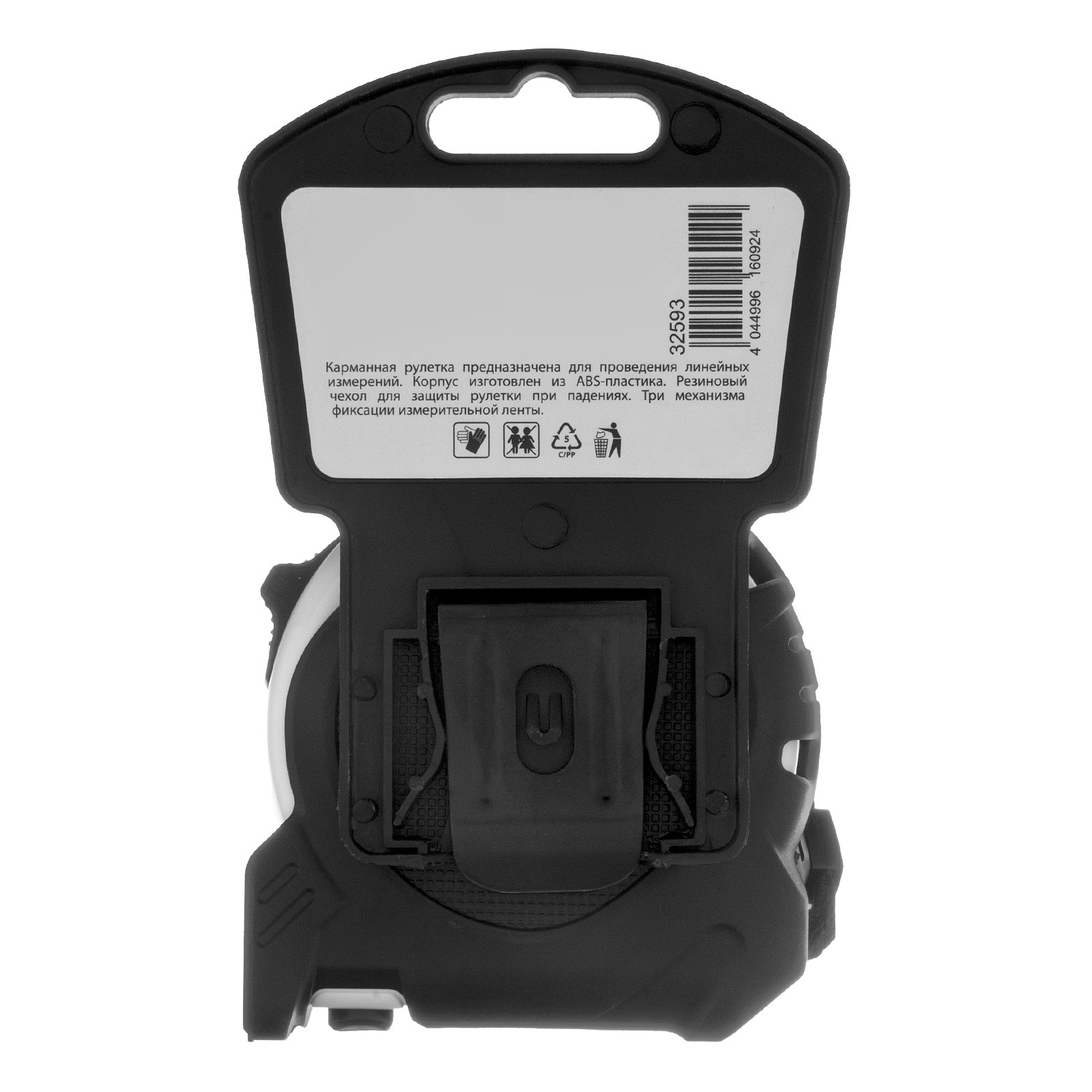 - Удобная транспортировка — рулетку можно повесить на запястье за ремешок или закрепить на поясе при помощи металлического зажима на корпусе.
