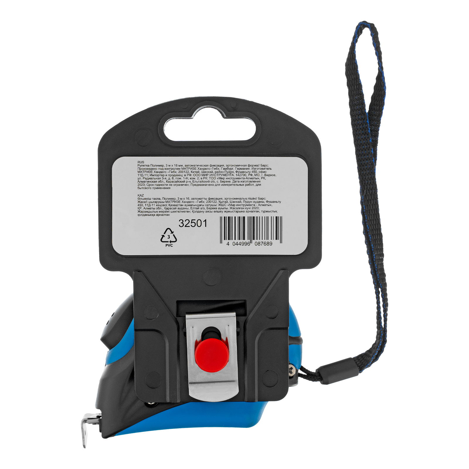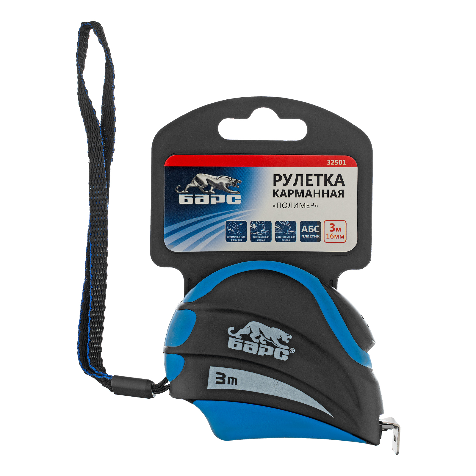 Рулетка Полимер,3 м х 16 мм,автоматическая фиксация,эргономичная форма Барс