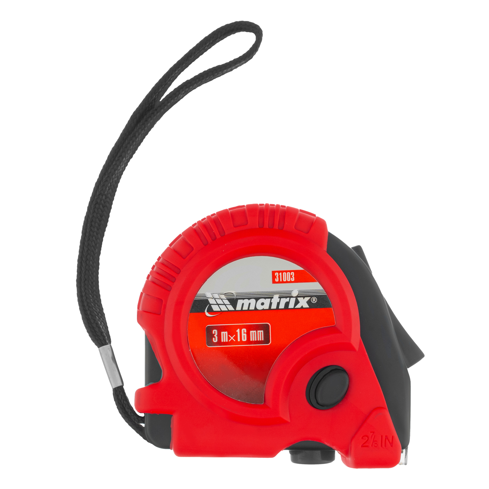 Рулетка Rubber,3 м х 16 мм,обрезиненный корпус Matrix