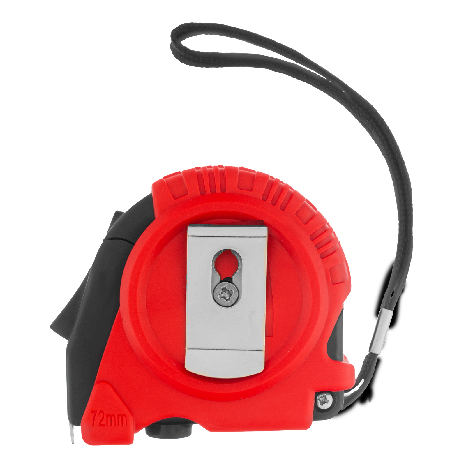 - Защита от падения — шнурок позволяет закрепить рулетку на запястье, клипса на корпусе — на поясном ремне.