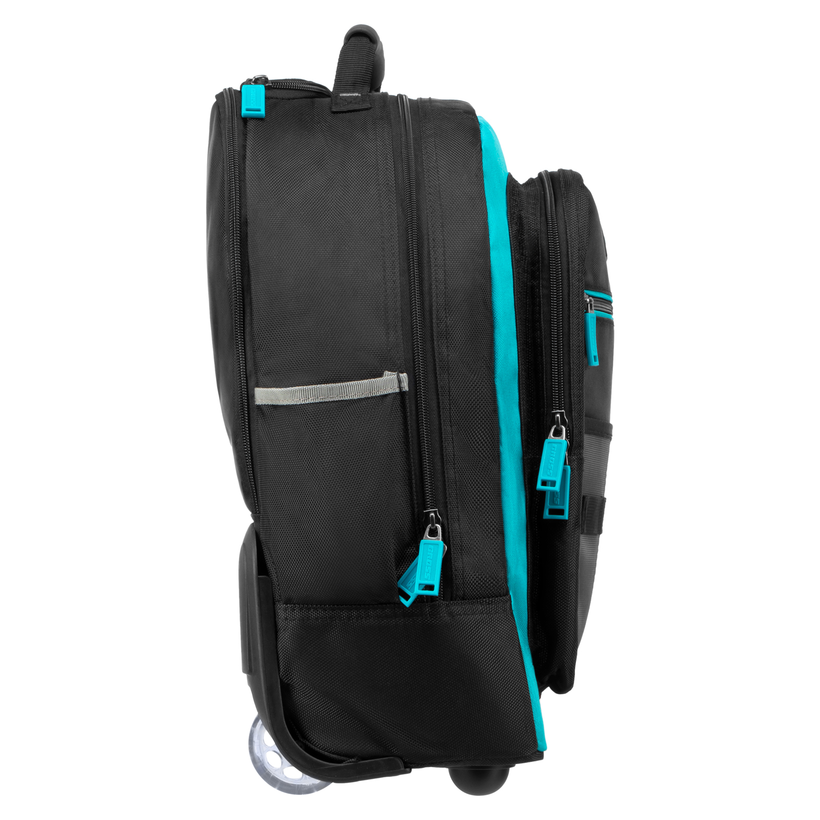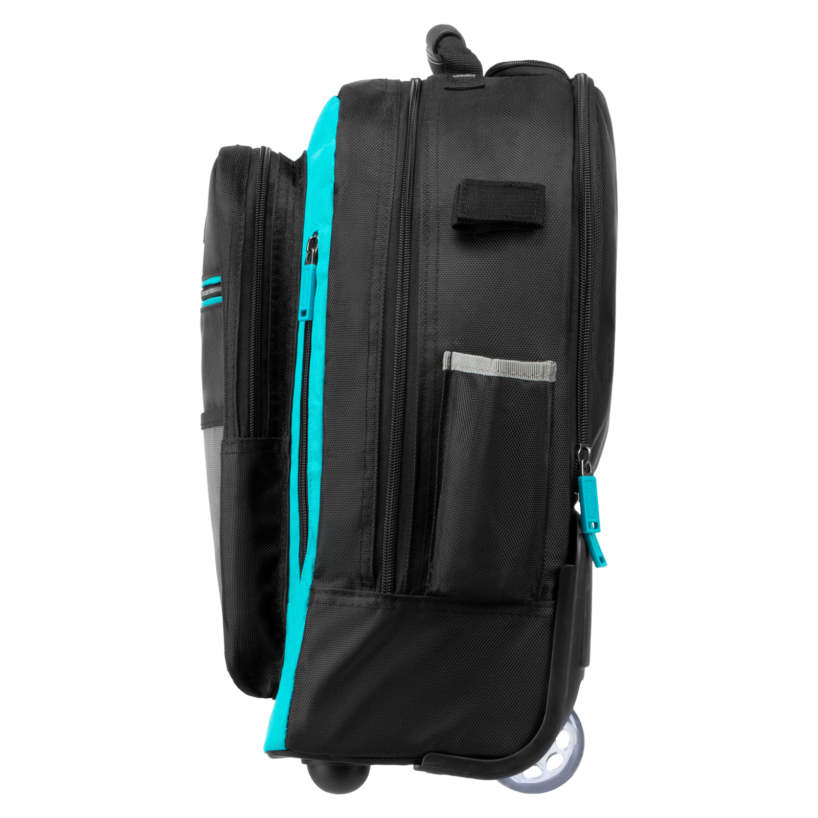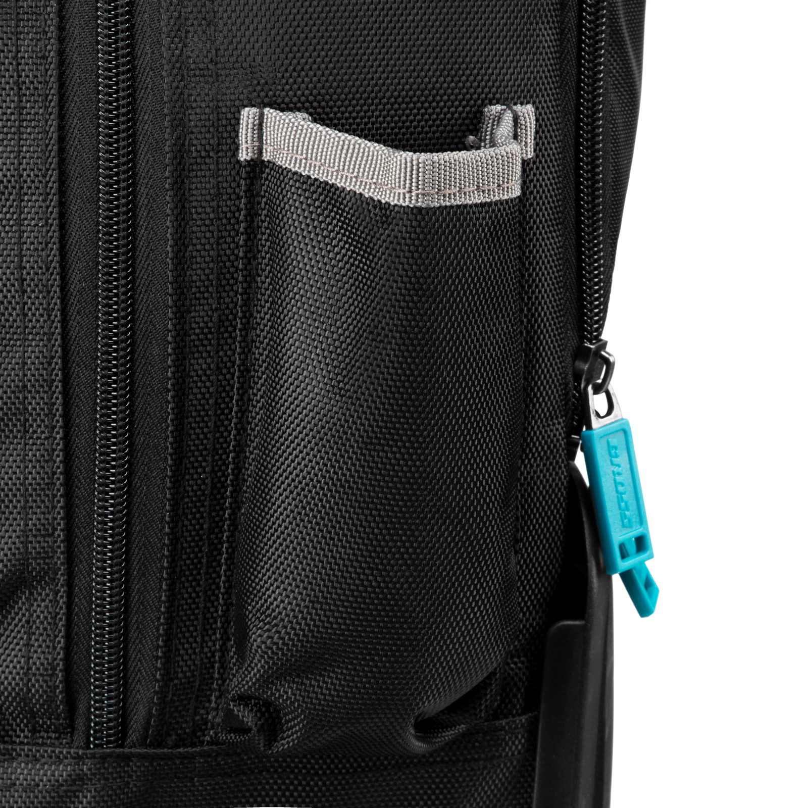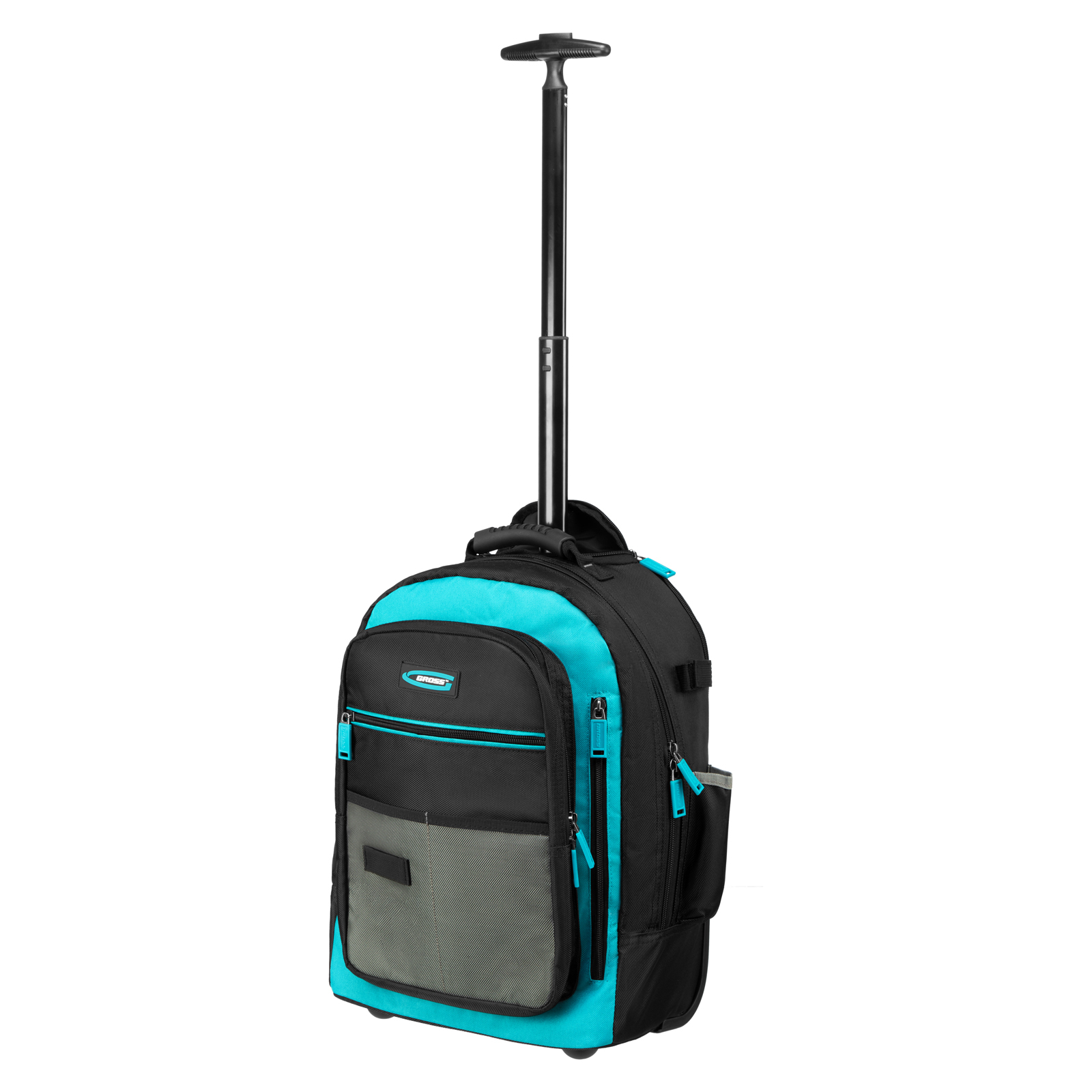 - Удобная транспортировка — колеса и телескопическая ручка облегчают перемещение рюкзака.