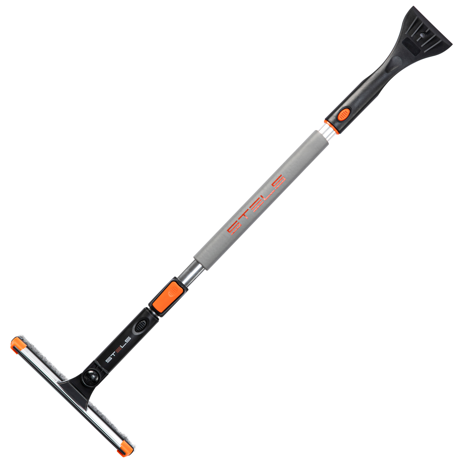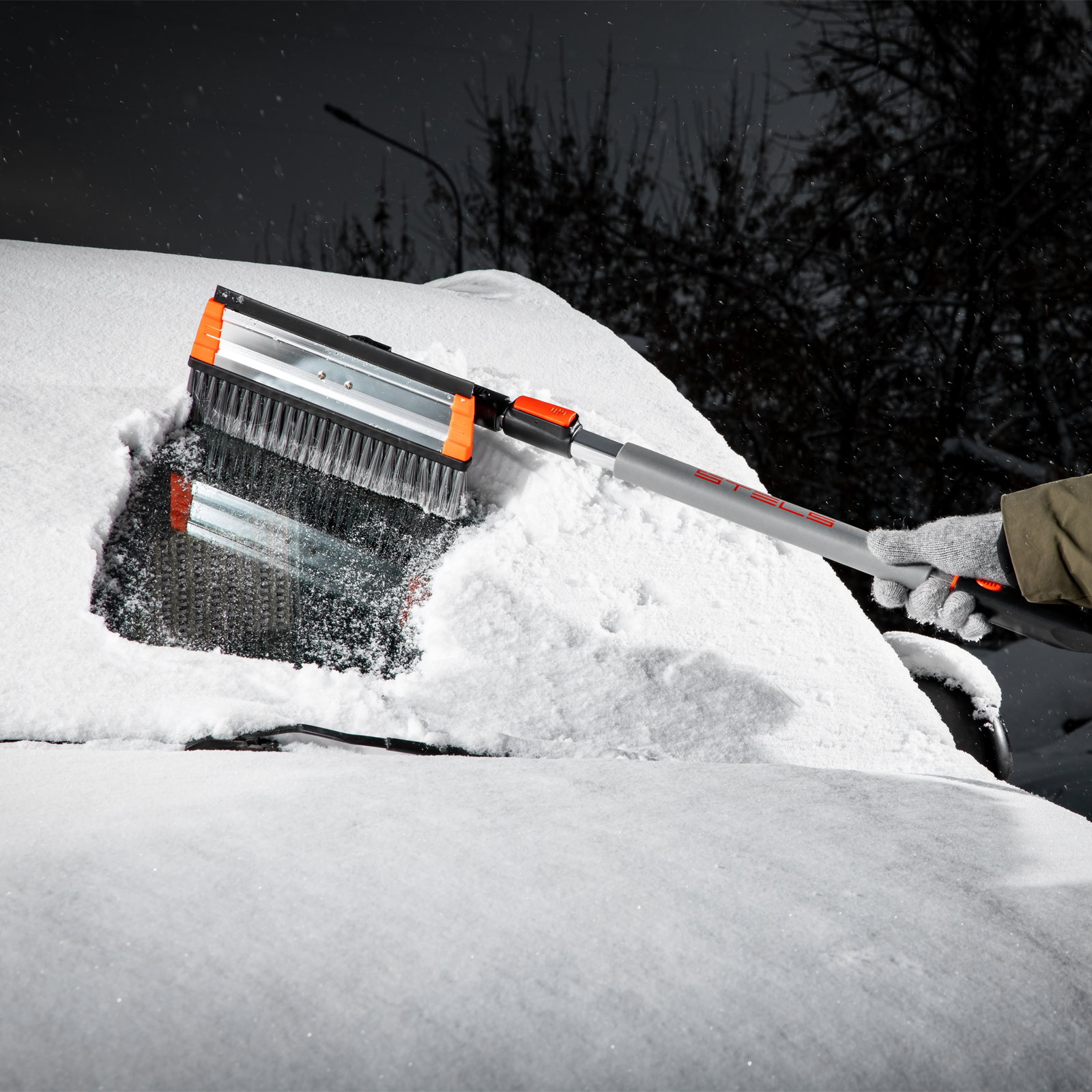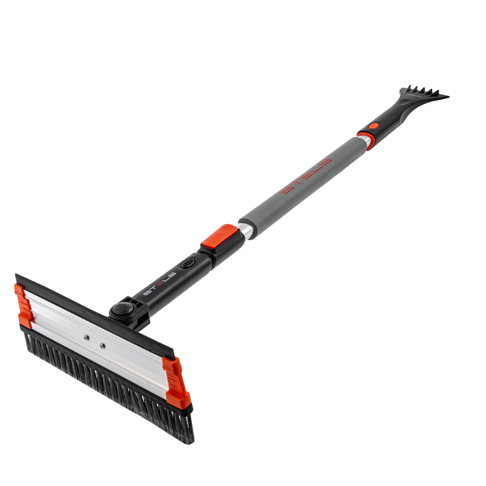 Телескопическая щетка-сметка для снега Stels 55299 со скребком и водосгоном, с поворотной головой, используется для очищения автомобиля от снега, наледи и воды. Рабочая длина регулируется в диапазоне 920-1330 мм. Благодаря рабочей части длиной 280 мм с плотной распушенной щетиной щетка эффективно и аккуратно удаляет слой снега с кузова, не царапая его. Скребок шириной 95 мм быстро удаляет наледь, а зубья дробят толстую корку льда. Щетка со скребком пригодится владельцам автомашин.