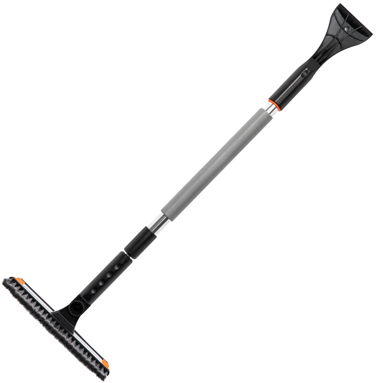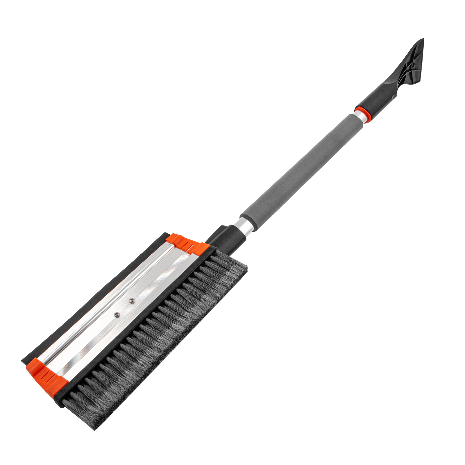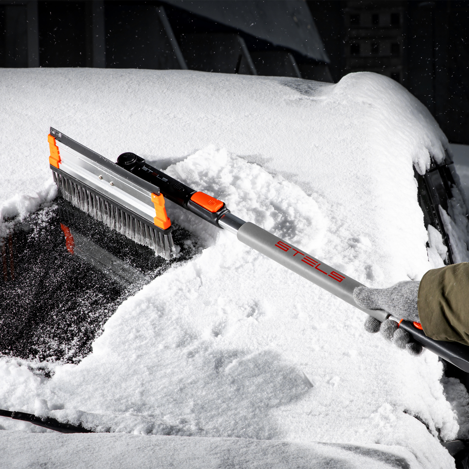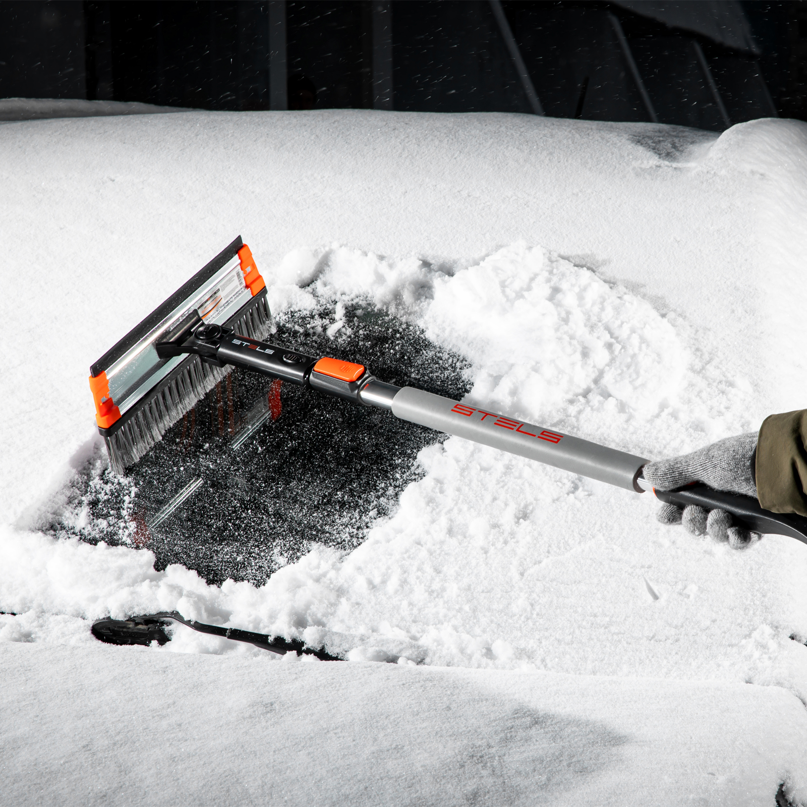 Телескопическая щетка-сметка для снега Stels 55299 со скребком и водосгоном, с поворотной головой, используется для очищения автомобиля от снега, наледи и воды. Рабочая длина регулируется в диапазоне 920-1330 мм. Благодаря рабочей части длиной 280 мм с плотной распушенной щетиной щетка эффективно и аккуратно удаляет слой снега с кузова, не царапая его. Скребок шириной 95 мм быстро удаляет наледь, а зубья дробят толстую корку льда. Щетка со скребком пригодится владельцам автомашин.