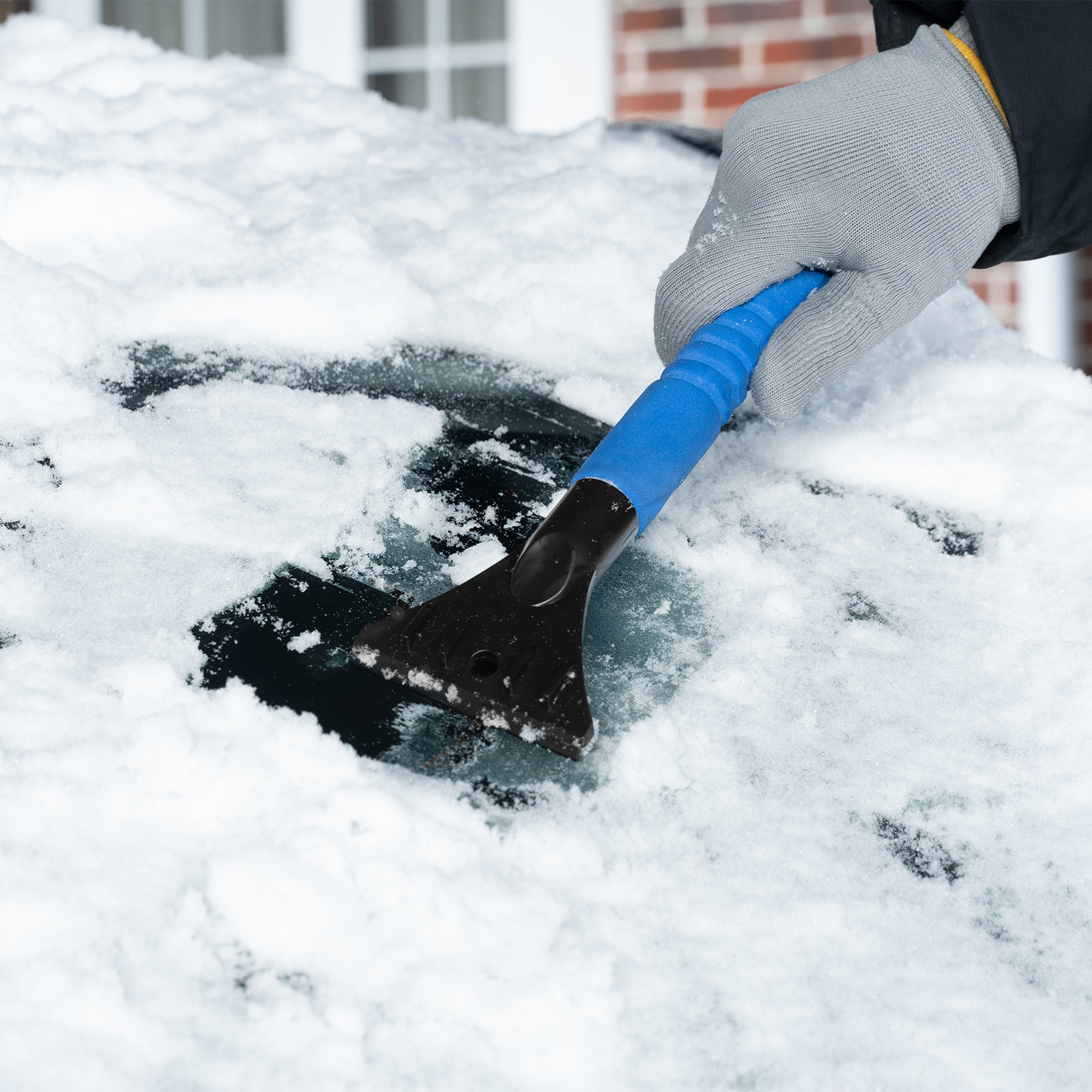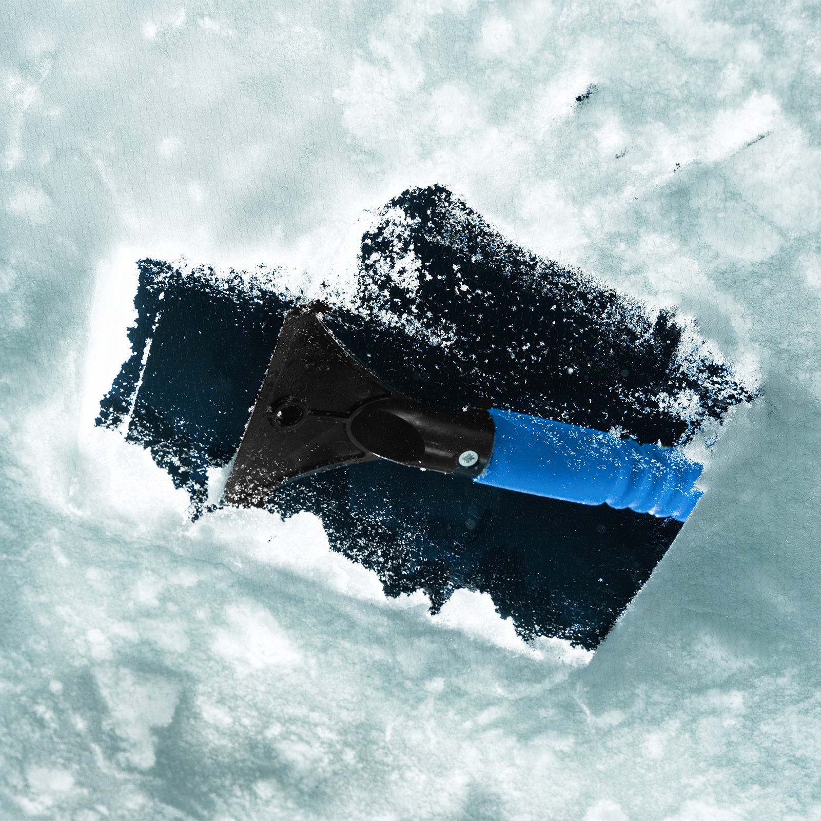 - Эффективность — усиленный скребок шириной 8,5 см успешно справляется с твердой наледью.