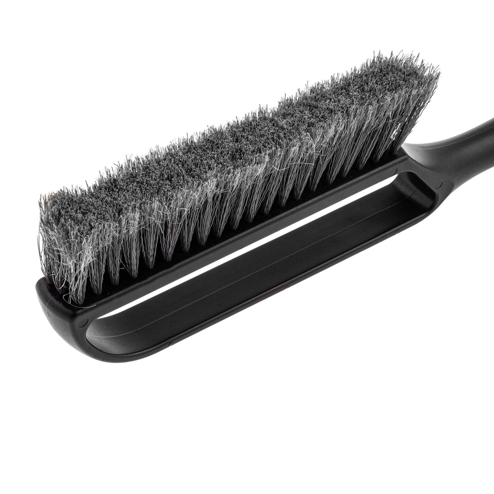 - Щетка-скребок имеет плотную щетину, распушенную на концах, поэтому эффективно убирает слой снега, не царапая поверхность кузова.