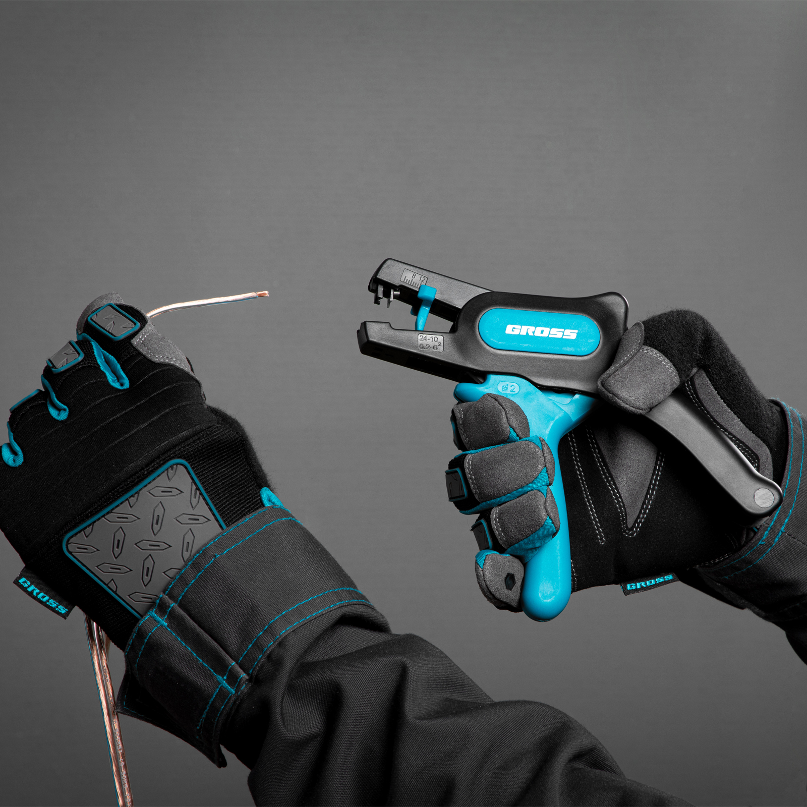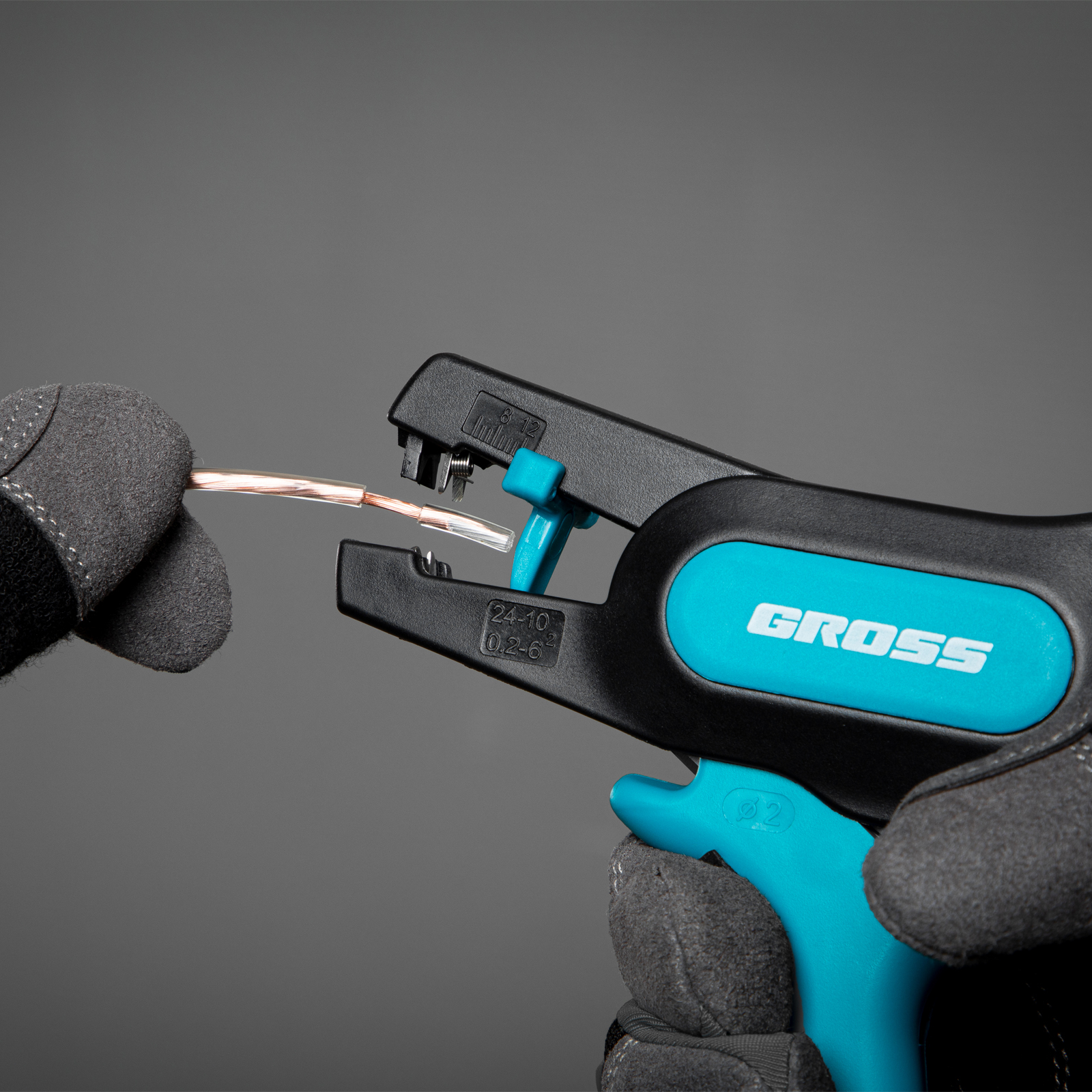 <p>Щипцы для зачистки электропроводов Gross 17722 с лезвиями из нержавеющей стали предназначены для электромонтажных работ с проводами сечением 0,2-6 кв. мм (10-24 AWG). С их помощью можно обрезать и зачистить медные и алюминиевые провода. Инструмент пригодится для бытового и профессионального применения.</p><h2>Преимущества</h2><ul><li>Многофункциональность — клещи позволяют регулировать длину снимаемой изоляции и силу зачистки для работы с проводами разных размеров.</li><li>Прочность и долговечность — ножи изготовлены из нержавеющей стали.</li><li>Комфортная работа без риска травмирования — двухкомпонентные рукоятки эргономичной формы обеспечивают удобный и безопасный захват.</li><li>Малый вес 170 г — длительная работа щипцами не вызывает дискомфорт.</li></ul>