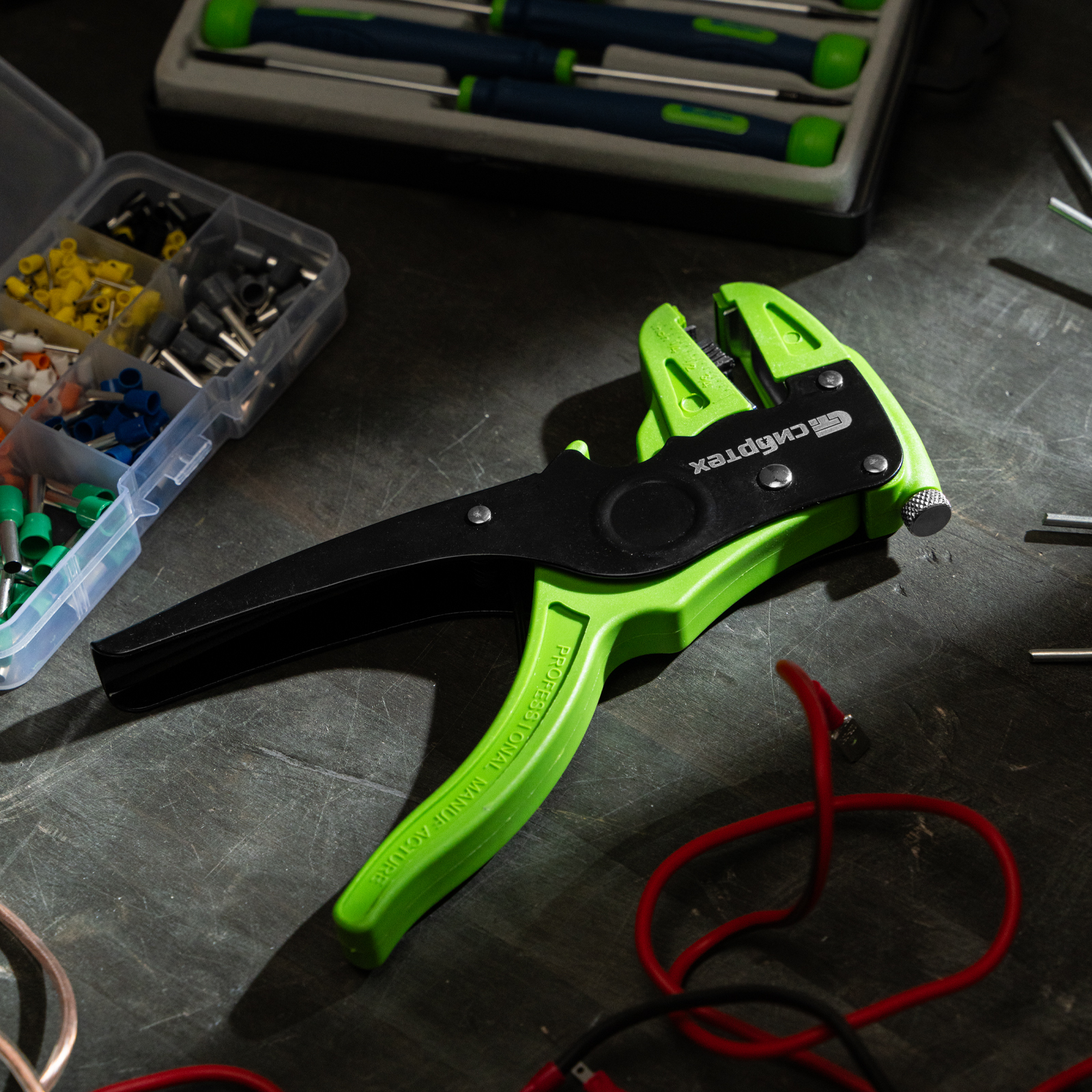 - Встроенный ограничитель позволяет регулировать длину зачищаемых электропроводов.