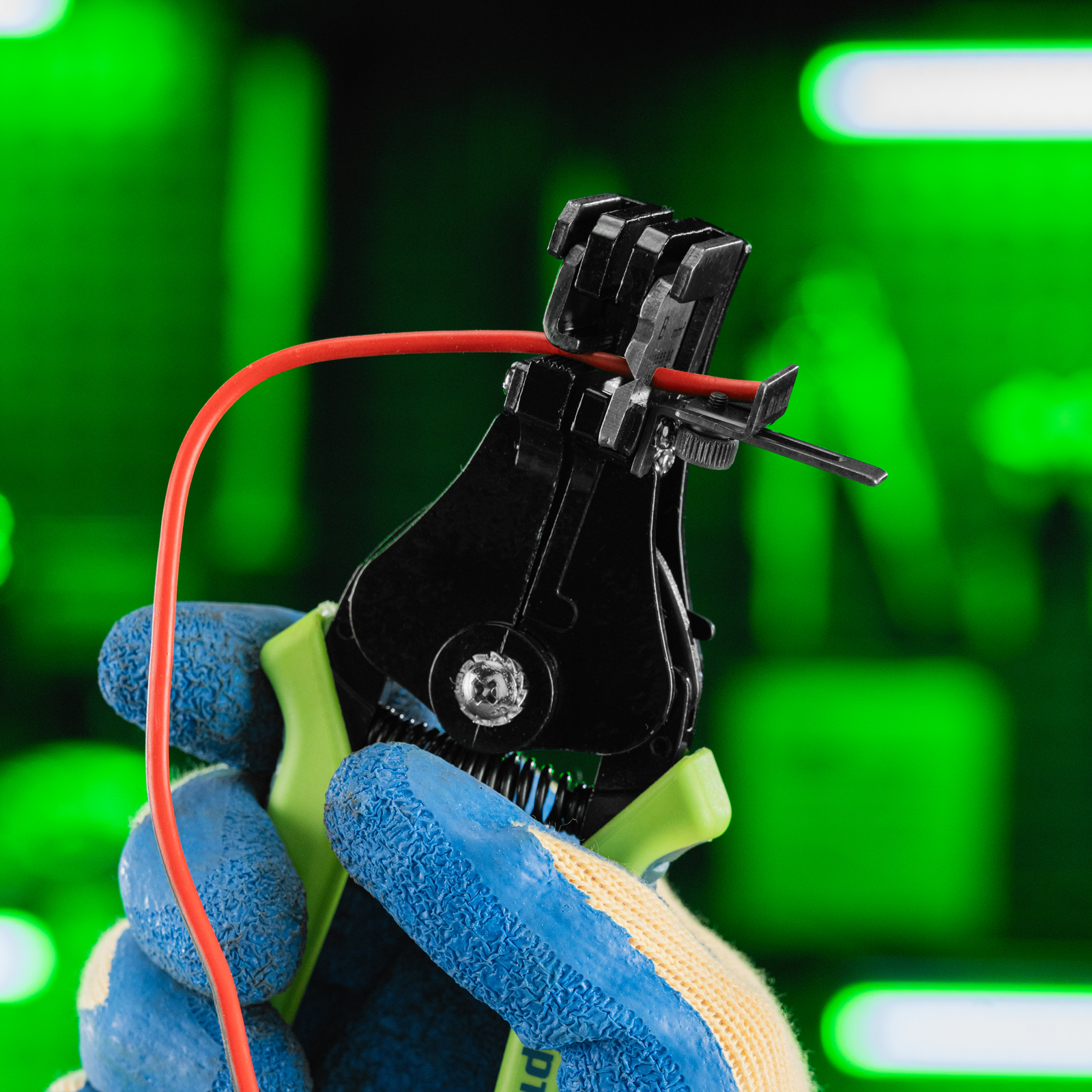 - Встроенный ограничитель позволяет регулировать длину зачищаемых электропроводов.