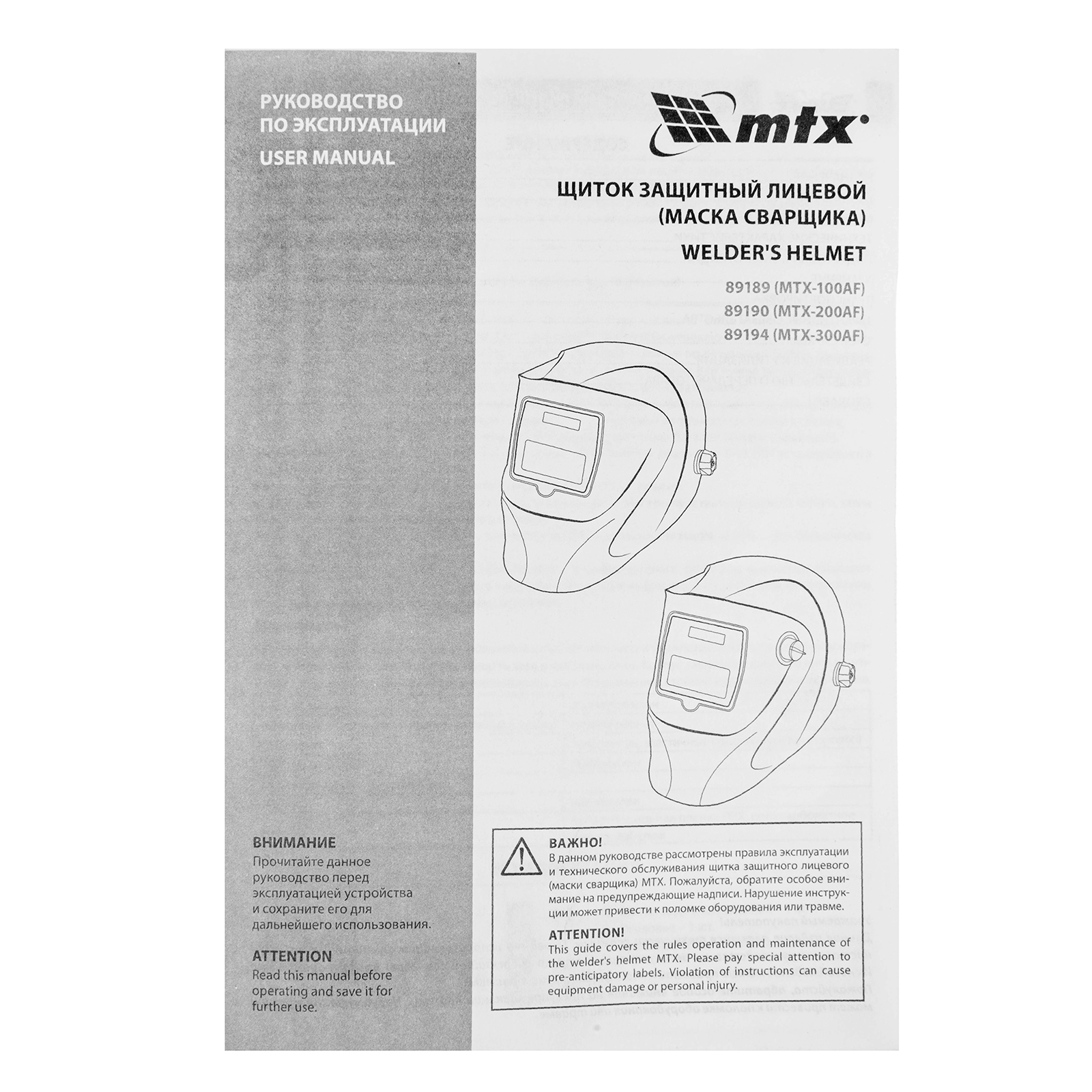 Маска сварщика - 1 штРуководство по эксплкатации - 1 шт