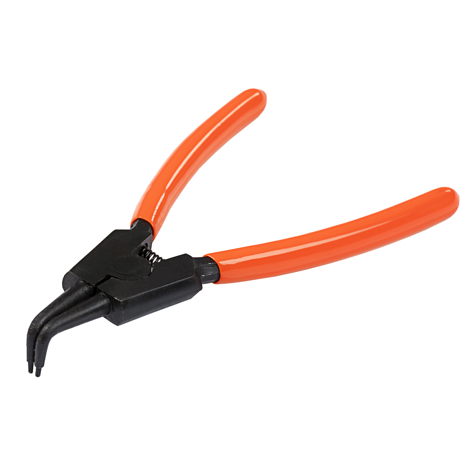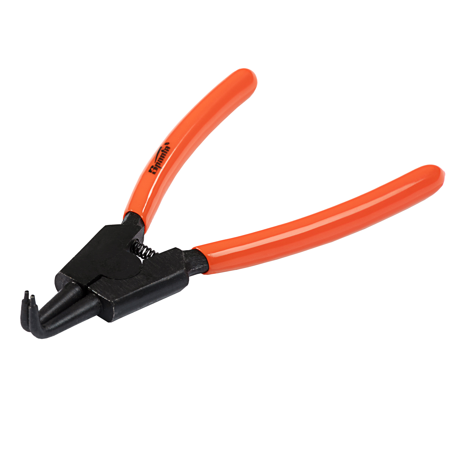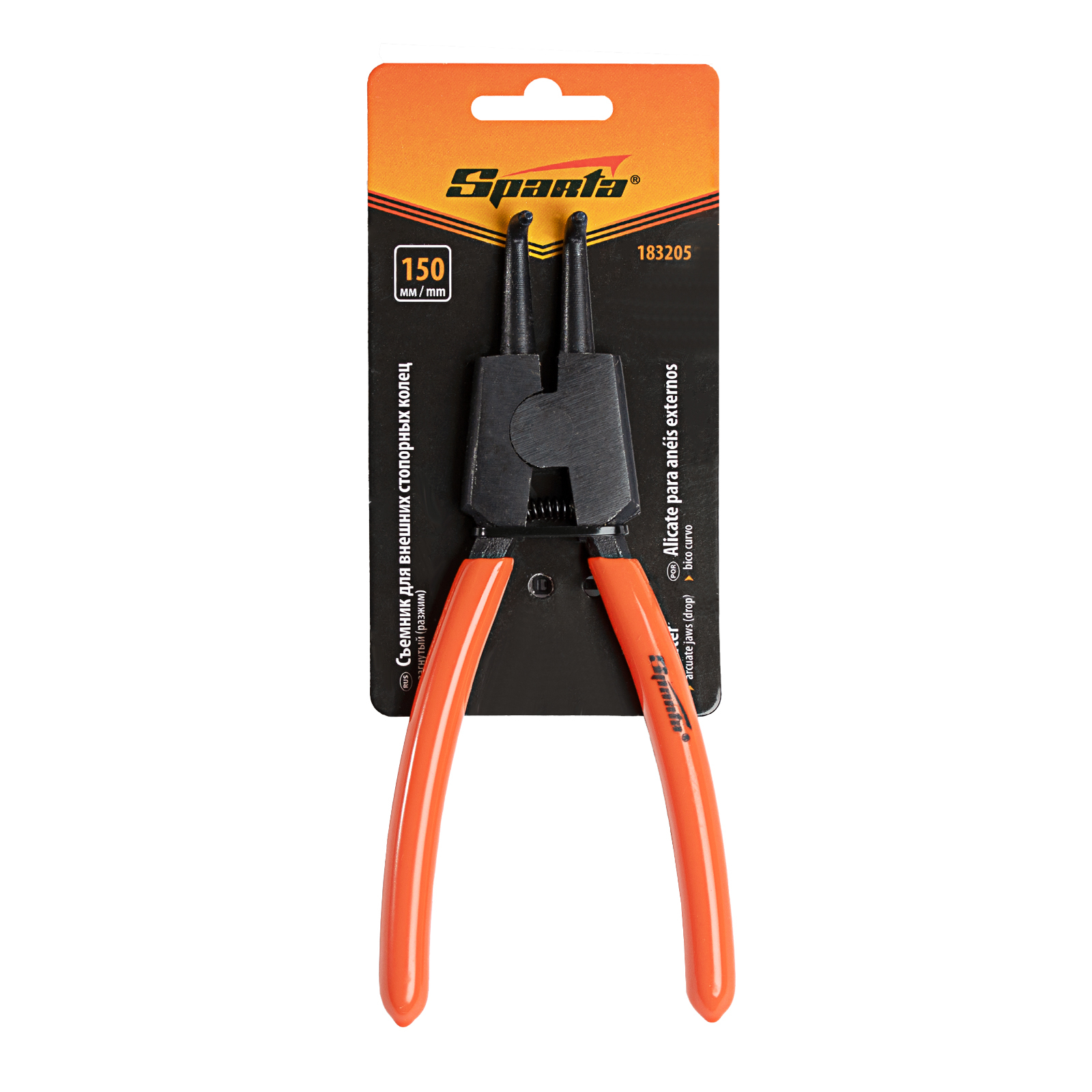 <p>Съемник Sparta 183205 длиной 150 мм, с изогнутыми губками, работает на разжим и предназначен для снятия и установки внешних стопорных колец. Наконечники вставляются в отверстия ушек кольца, при сжатии рукояток кольцо разжимается, и его можно установить на посадочное место. Благодаря особой форме наконечников ушки кольца не соскальзывают с них. Съемник стопорных колец используется для ремонта автомобилей, велосипедов, бытовой техники.</p><h2>Преимущества</h2><ul><li>Прочность и долговечность — съемник из углеродистой стали выдерживает многократное использование.</li><li>Удобная работа в труднодоступных местах — инструмент имеет изогнутые губки.</li><li>Устойчивость к высоким нагрузкам — наконечники закалены до необходимой твердости.</li><li>Комфортная работа — обливные рукоятки удобно ложатся в руку.</li></ul>