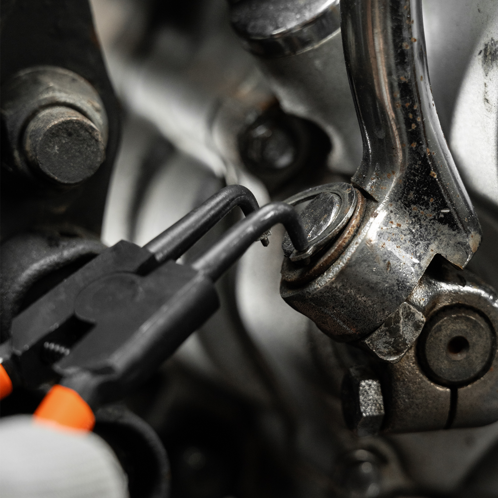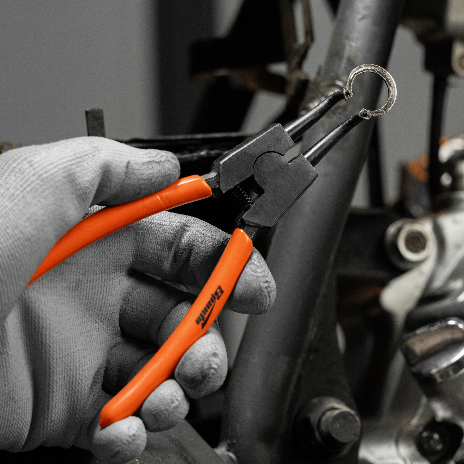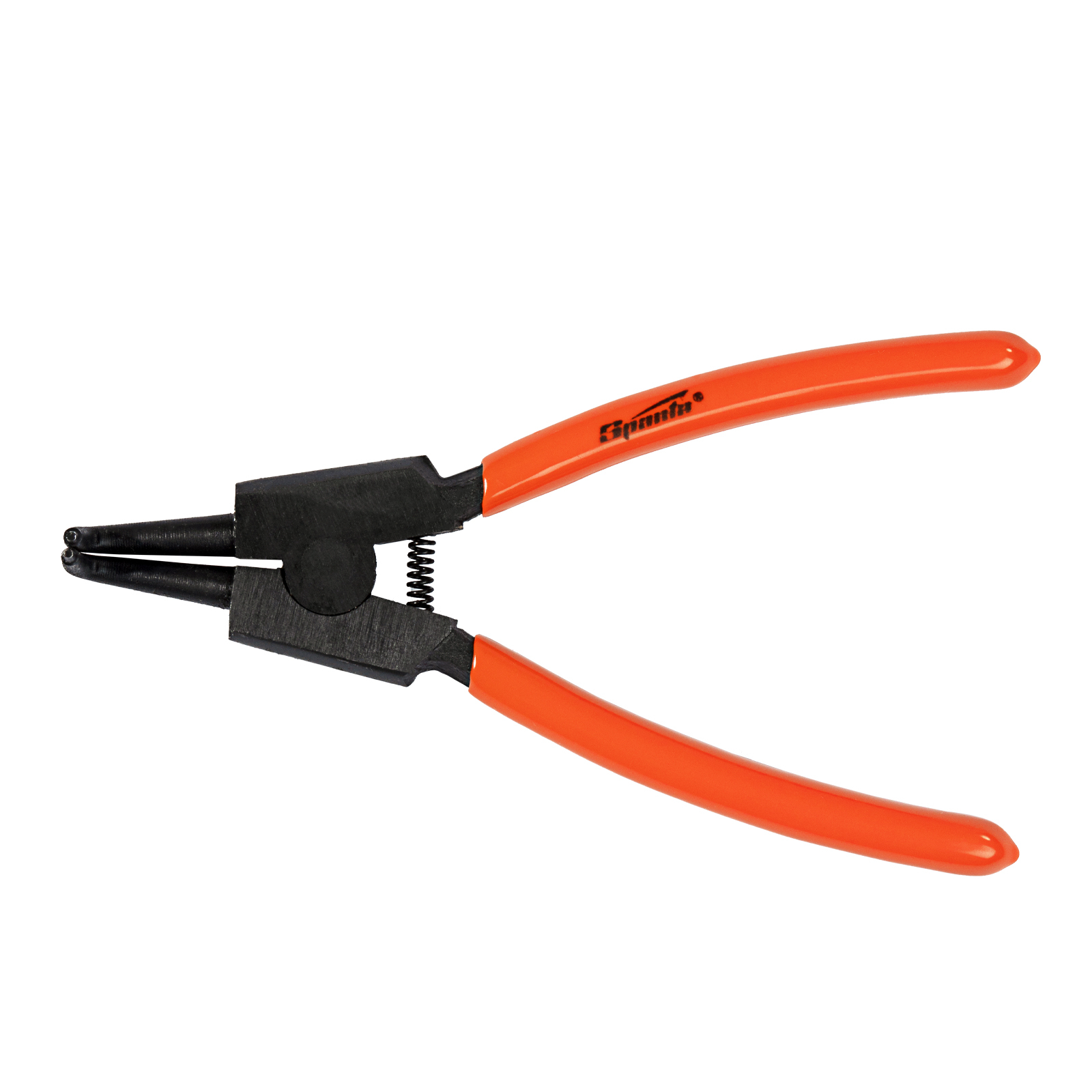 <p>Съемник Sparta 183205 длиной 150 мм, с изогнутыми губками, работает на разжим и предназначен для снятия и установки внешних стопорных колец. Наконечники вставляются в отверстия ушек кольца, при сжатии рукояток кольцо разжимается, и его можно установить на посадочное место. Благодаря особой форме наконечников ушки кольца не соскальзывают с них. Съемник стопорных колец используется для ремонта автомобилей, велосипедов, бытовой техники.</p><h2>Преимущества</h2><ul><li>Прочность и долговечность — съемник из углеродистой стали выдерживает многократное использование.</li><li>Удобная работа в труднодоступных местах — инструмент имеет изогнутые губки.</li><li>Устойчивость к высоким нагрузкам — наконечники закалены до необходимой твердости.</li><li>Комфортная работа — обливные рукоятки удобно ложатся в руку.</li></ul>