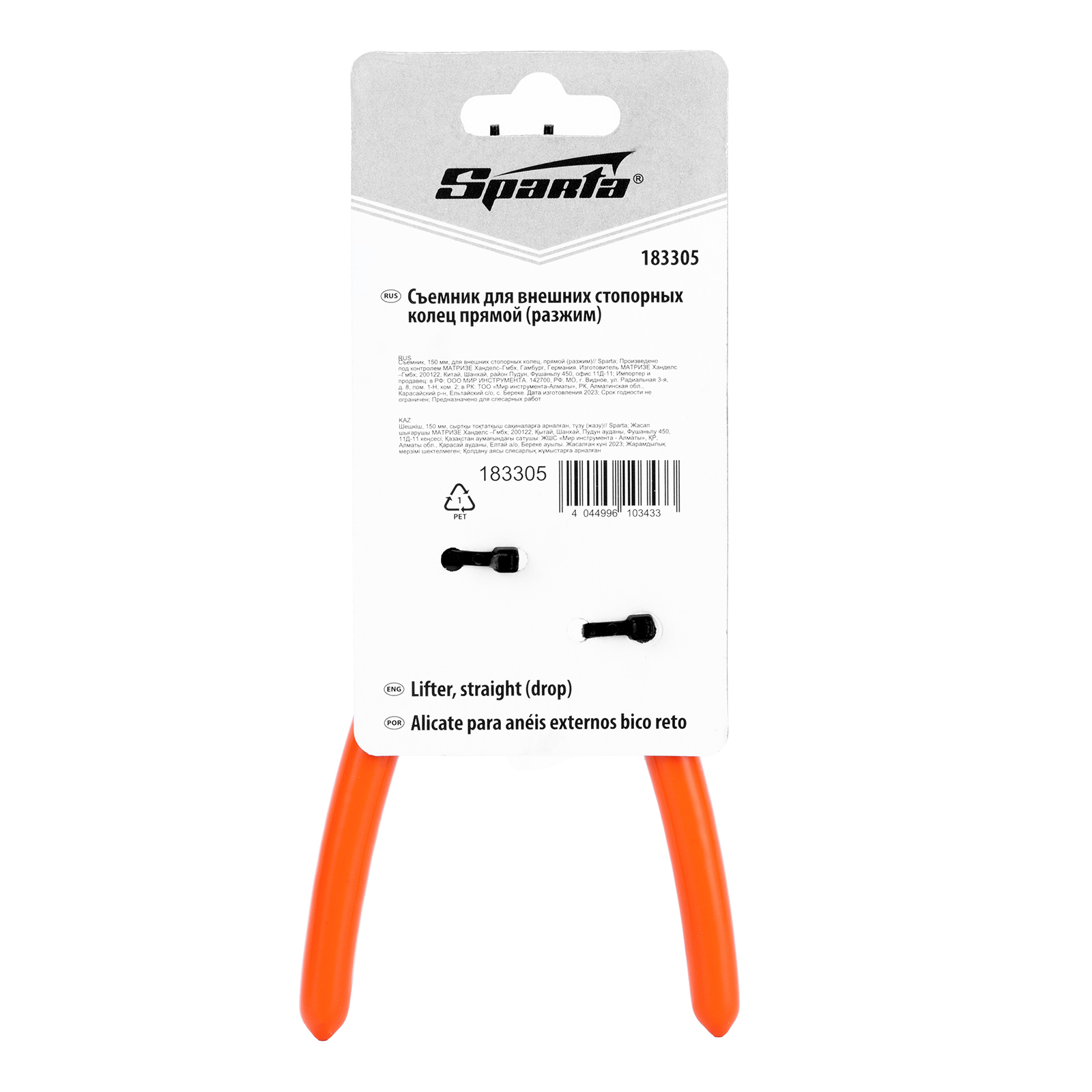 <p>Прямой съемник Sparta 183305 длиной 150 мм — монтажный инструмент, работающий на разжим и использующийся для установки и снятия внешних стопорных колец с отверстиями. Благодаря продуманной конфигурации наконечники съемника надежно удерживают проушины кольца. Инструмент будет полезен мастерам по ремонту бытовой техники или автомобилей, а также пригодится в домашнем хозяйстве.</p><h2>Преимущества</h2><ul><li>Устойчивость к нагрузкам — съемник стопорных колец изготовлен из прочной углеродистой стали.</li><li>Долговечность — наконечники съемника имеют повышенную твердость.</li><li>Комфорт во время работы — обливные рукоятки обеспечивают надежный хват.</li></ul>