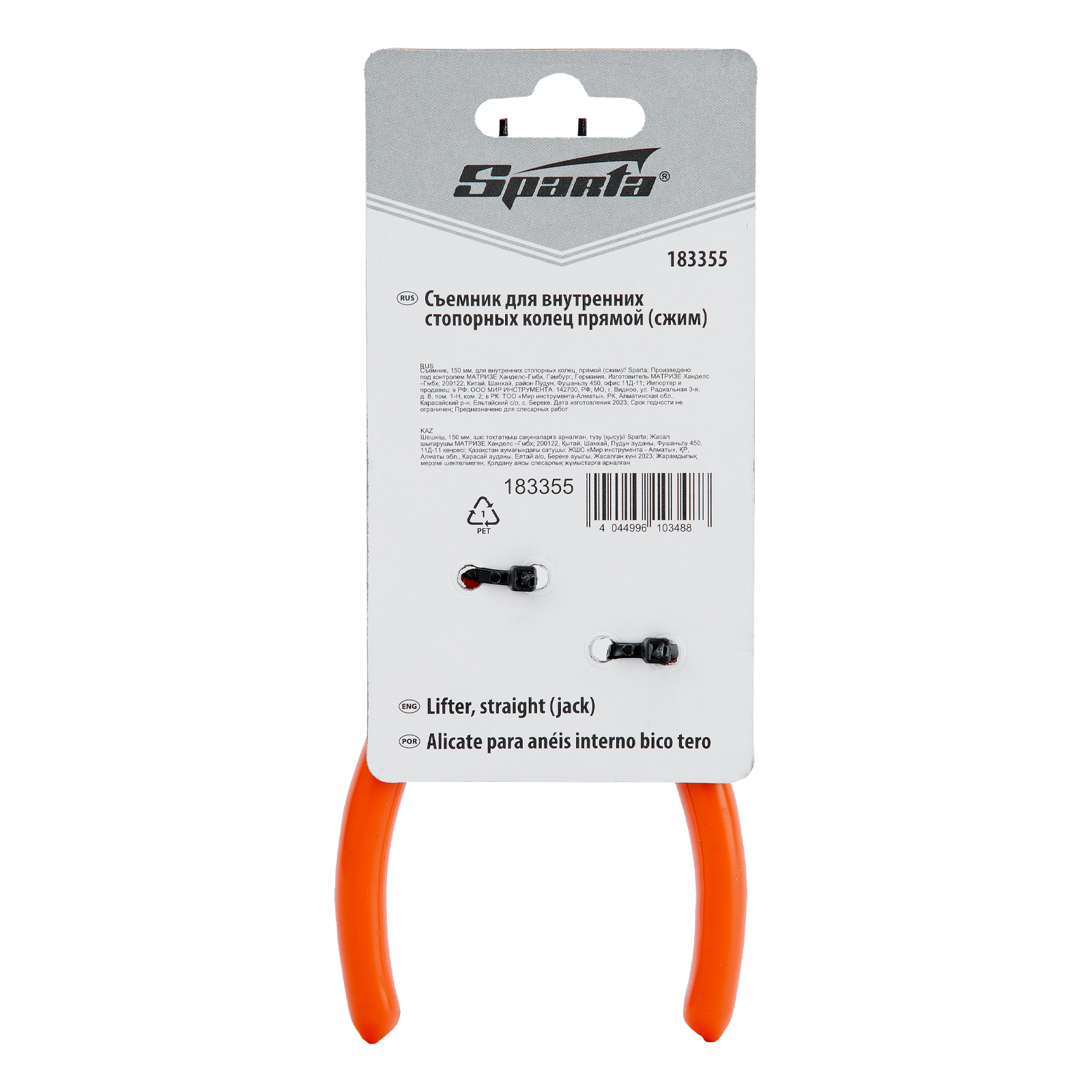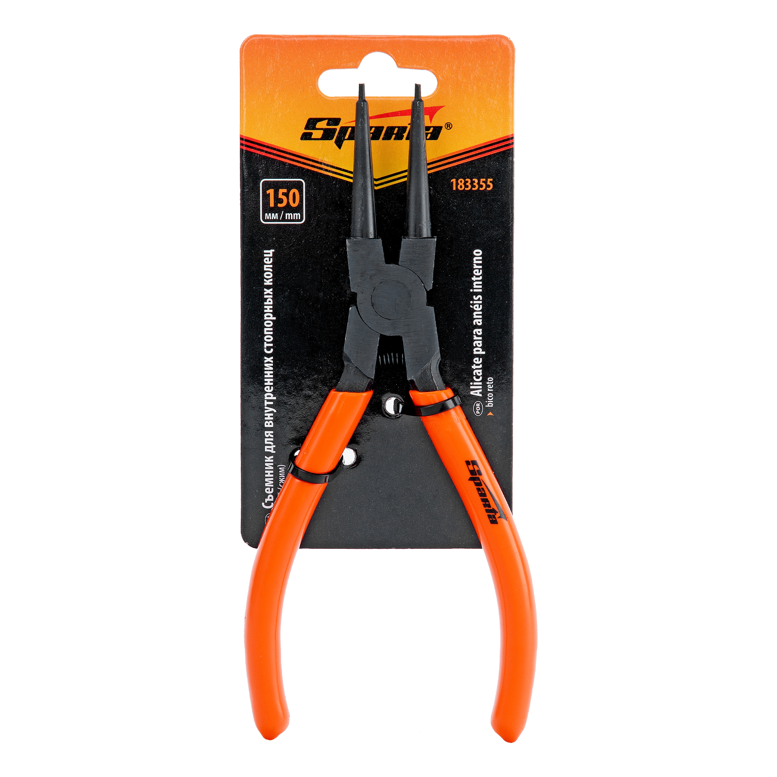 <p>Прямой съемник Sparta 183355 длиной 150 мм работает на сжим и предназначен для установки и снятия внутренних стопорных колец с проушинами. Съемник имеет наконечники особой геометрии, что уменьшает вероятность срыва кольца. Инструмент пригодится в мастерской, автосервисе, а также в быту.</p><h2>Преимущества</h2><ul><li>Устойчивость к нагрузкам — съемник стопорных колец изготовлен из прочной углеродистой стали.</li><li>Долговечность — наконечники съемника имеют повышенную твердость.</li><li>Комфорт во время работы — обливные рукоятки обеспечивают надежный хват.</li></ul>