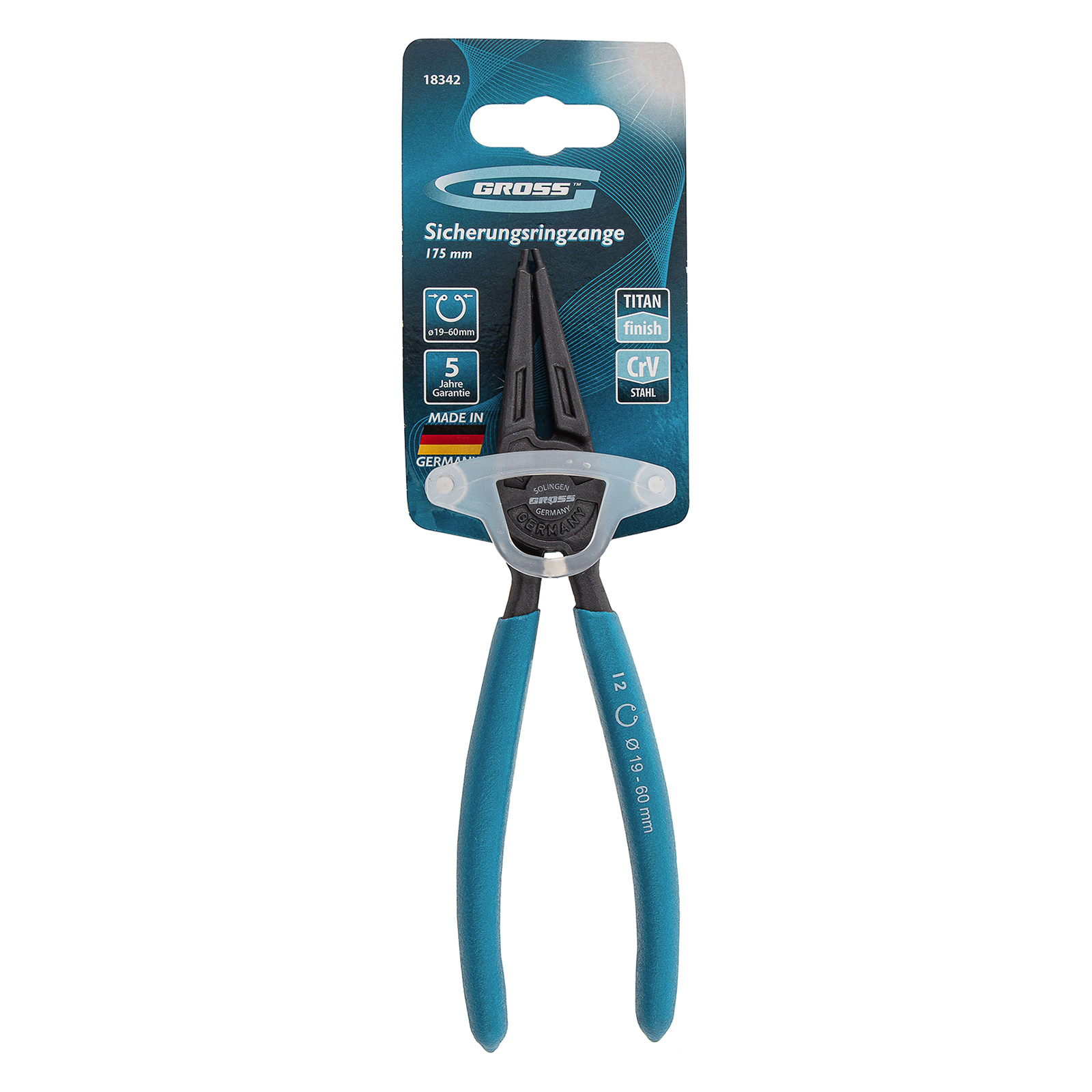 <p>Съемник Gross 18342 длиной 175 мм с прямыми губками работает на сжим и используется для монтажа и демонтажа внутренних стопорных колец диаметром 19-60 мм, размер отверстий которых соответствует диаметру наконечников — 1,8 мм. Инструмент пригодится для ремонта автомобилей, мотоциклов, велосипедов, бытовой техники.</p><h2>Преимущества</h2><ul><li>Съемник стопорных колец устойчив к нагрузкам, т.к. изготовлен из хромованадиевой стали.</li><li>Стальные части защищены от образования коррозии специальным покрытием Titan Finish.</li><li>Инструмент надежно ложится в руки благодаря обливным рукояткам.</li><li>Надежность съемника подтверждена 5-летней гарантией на заводской брак.</li></ul>