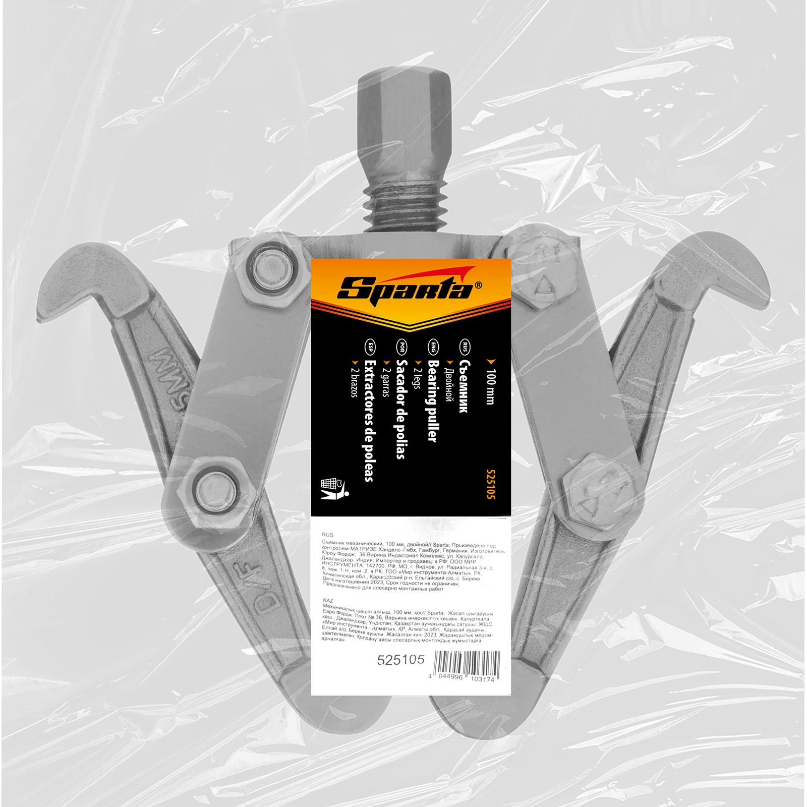 <p>Двойной механический съемник Sparta 525105 длиной 100 мм помогает быстро демонтировать подшипники, муфты, шкивы и другие детали транспортного средства без риска их повреждения. Двухсторонние поворотные захваты позволяют извлекать элементы, расположенных как снаружи, так и внутри механизмов. Устройство пригодится как начинающему мастеру, так и профессионалу.</p><h2>Преимущества</h2><ul><li>Устойчивость к механическим нагрузкам — съемник выполнен из прочной стали 45.</li><li>Продуманная конструкция — захваты можно переставлять, что значительно расширяет возможности съемника.</li><li>Надежное сцепление с ключом — силовой болт имеет шестигранный наконечник.</li></ul>
