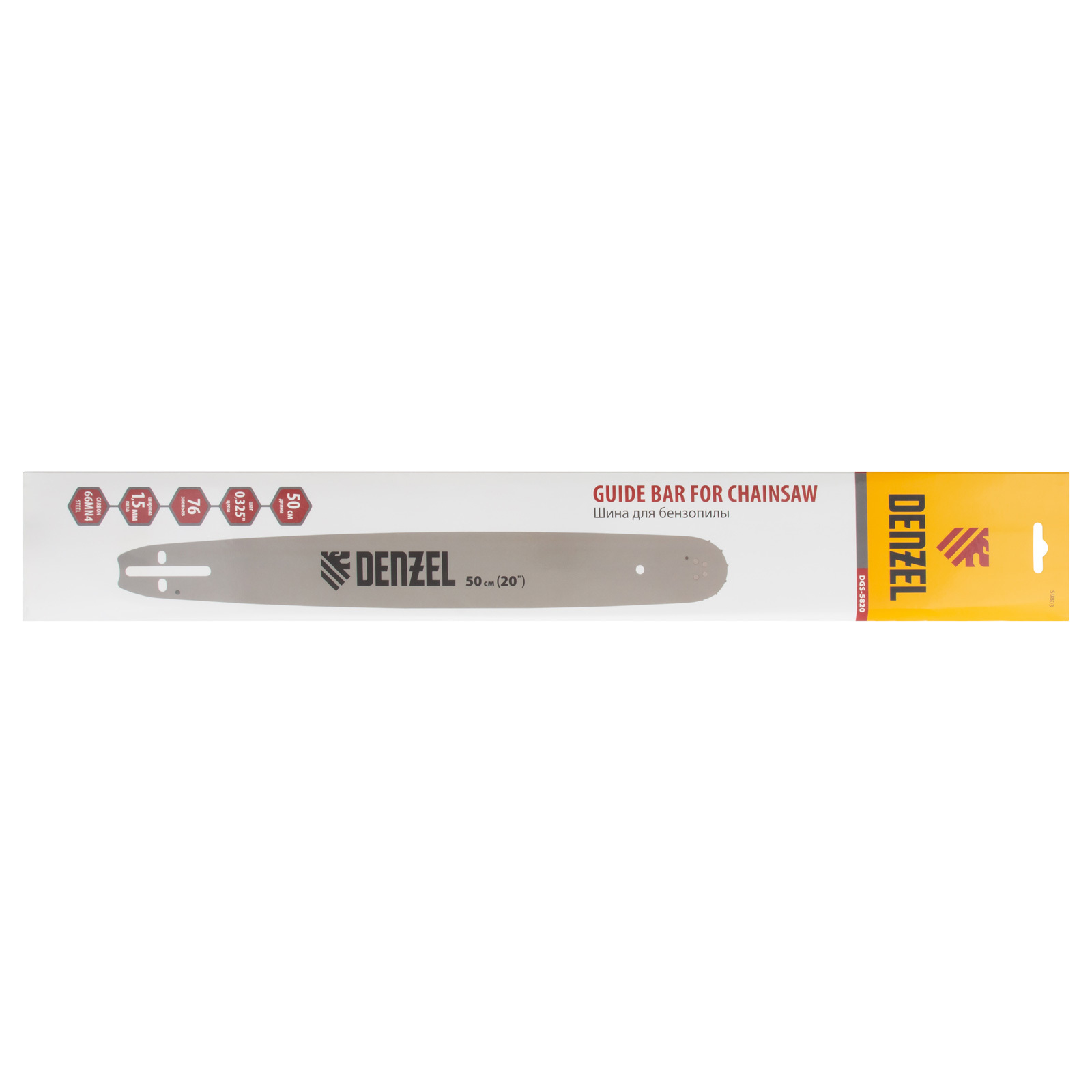 Шина для бензопилы DGS-5820, длина 50 см (20") шаг 0.325", паз 1.5 мм, 76 звеньев Denzel