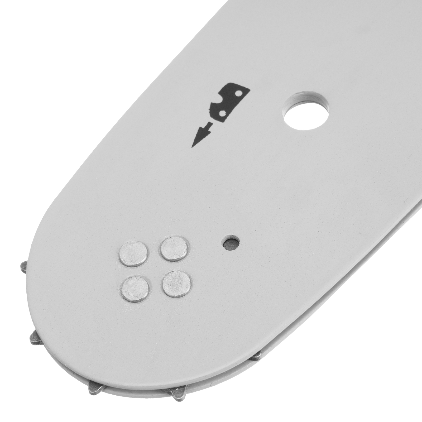- Продуманная конструкция — технологические отверстия обеспечивают равномерную подачу масла к цепи, такое решение увеличивает срок службы пильной фурнитуры и защищает двигатель пилы от перегрева.
