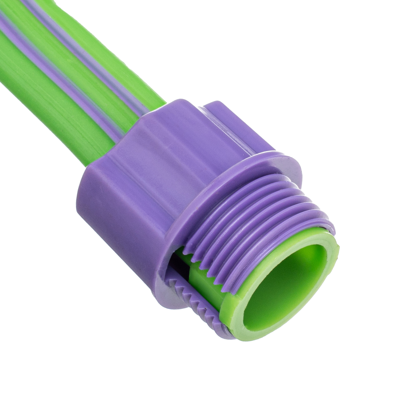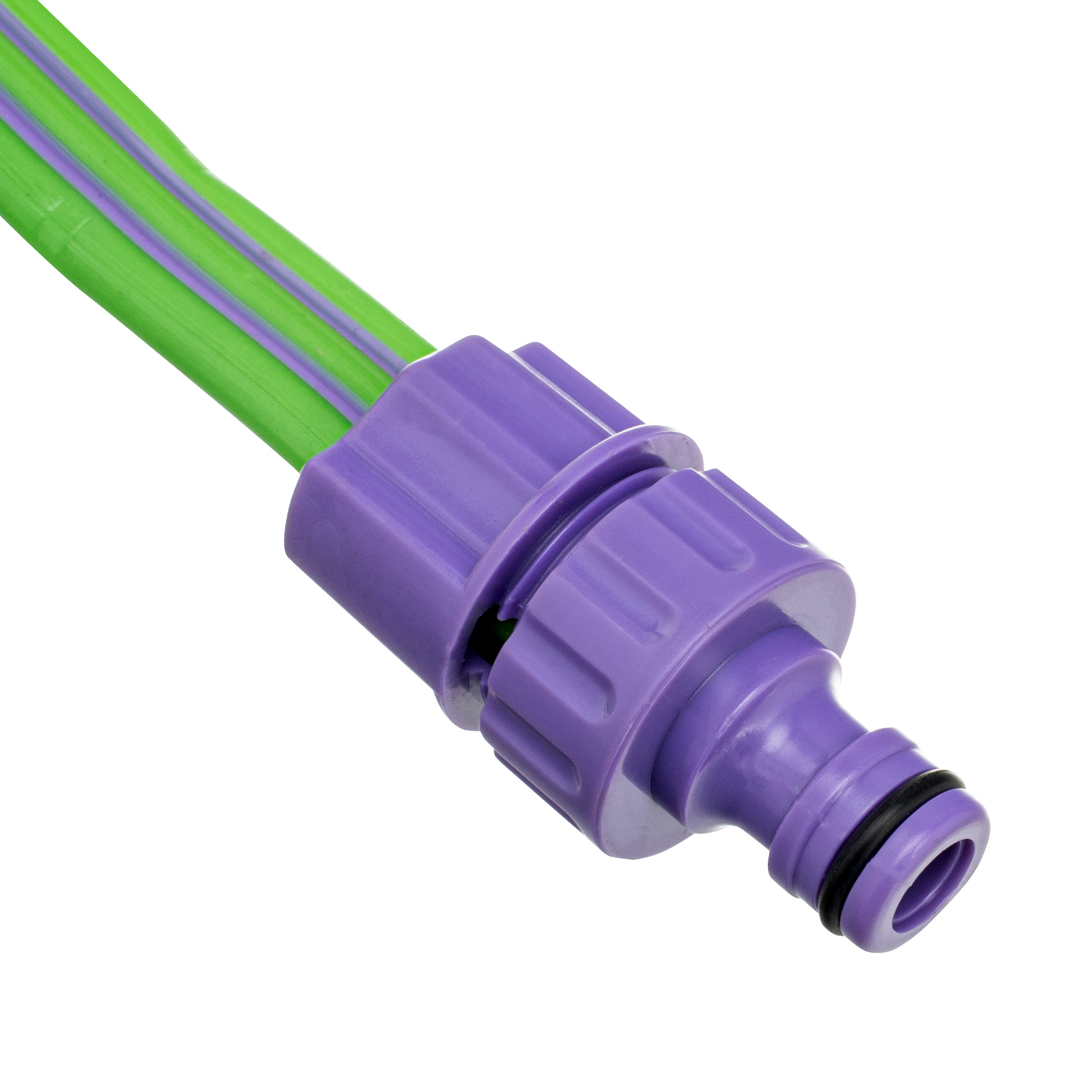 - Прочность и долговечность — шланг из высококачественного поливинилхлорида не теряет своей формы и не разрушается под воздействием УФ-лучей и перепадов температур, адаптеры выполнены из ударопрочного пластика