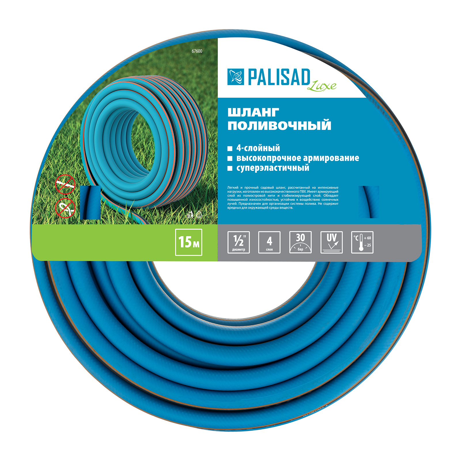 <p>Армированный поливочный шланг Palisad LUXE 67600 длиной 15 м и диаметром 1/2" облегчает уход за растениями, избавляя от необходимости пользоваться лейкой. Совместим с любыми системами полива ТМ Palisad.</p><h2>Преимущества</h2><ul><li>Устойчивость к интенсивным нагрузкам — шланг армирован суперпрочной полиэстерной нитью с точно рассчитанным шагом и углом наклона.</li><li>Долговечность — защитное покрытие «Soft Touch» предотвращает механические повреждения и разрушение от воздействия УФ-лучей.</li><li>Высокие эксплуатационные свойства — стенки толщиной 2,3 мм выдерживают давление до 30 бар.</li><li>Эластичность — шланг легко принимает исходную форму после сгибаний.</li><li>Экологичность — высококачественный ПВХ (поливинилхлорид) не содержит вредных веществ.</li></ul>