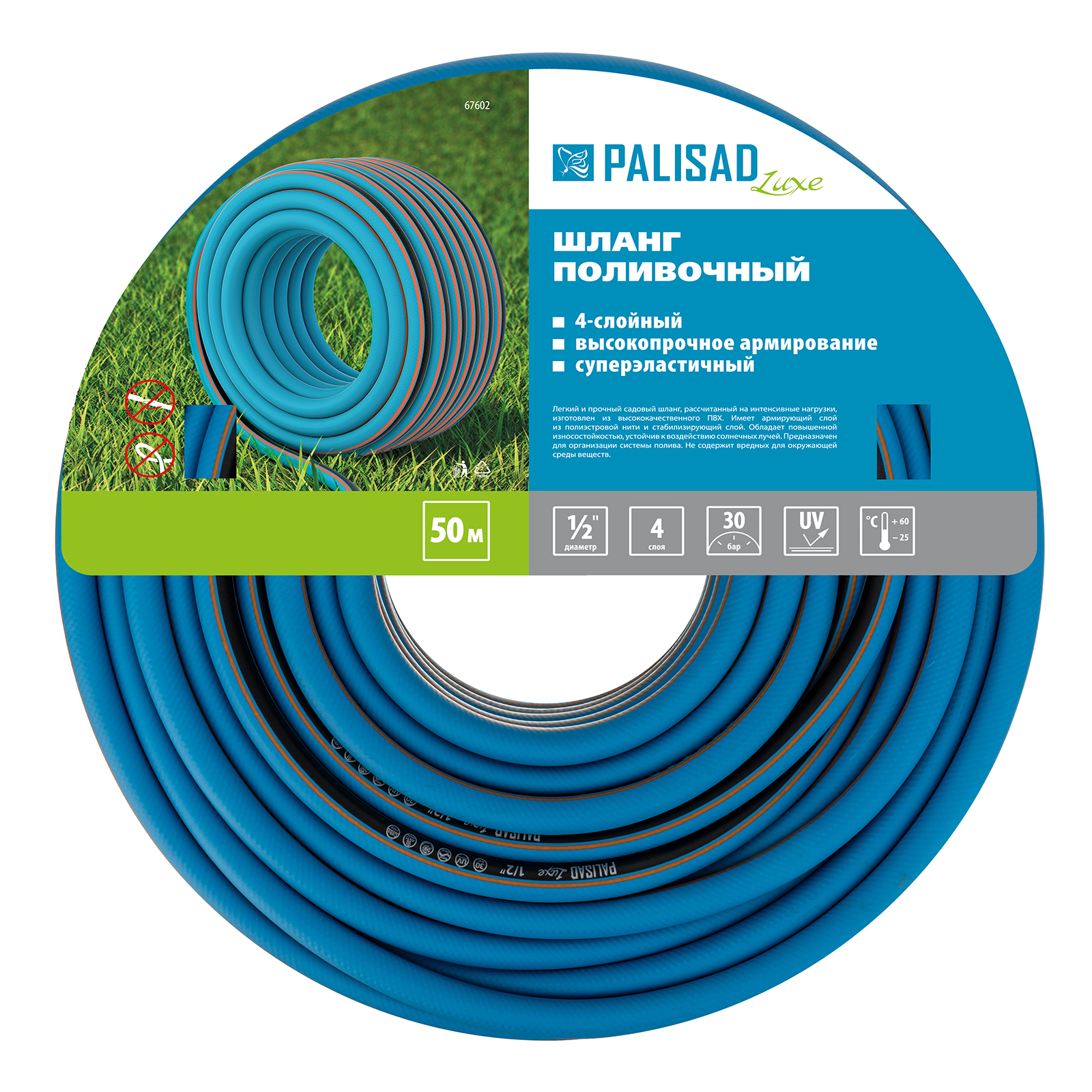 <p>Армированный поливочный шланг Palisad LUXE 67602 длиной 50 м и диаметром 1/2" облегчает уход за растениями, избавляя от необходимости пользоваться лейкой. Совместим с любыми системами полива ТМ Palisad.</p><h2>Преимущества</h2><ul><li>Устойчивость к интенсивным нагрузкам — шланг армирован суперпрочной полиэстерной нитью с точно рассчитанным шагом и углом наклона.</li><li>Долговечность — защитное покрытие «Soft Touch» предотвращает механические повреждения и разрушение от воздействия УФ-лучей.</li><li>Высокие эксплуатационные свойства — стенки толщиной 2,3 мм выдерживают давление до 30 бар.</li><li>Эластичность — шланг легко принимает исходную форму после сгибаний.</li><li>Экологичность — высококачественный ПВХ (поливинилхлорид) не содержит вредных веществ.</li></ul>