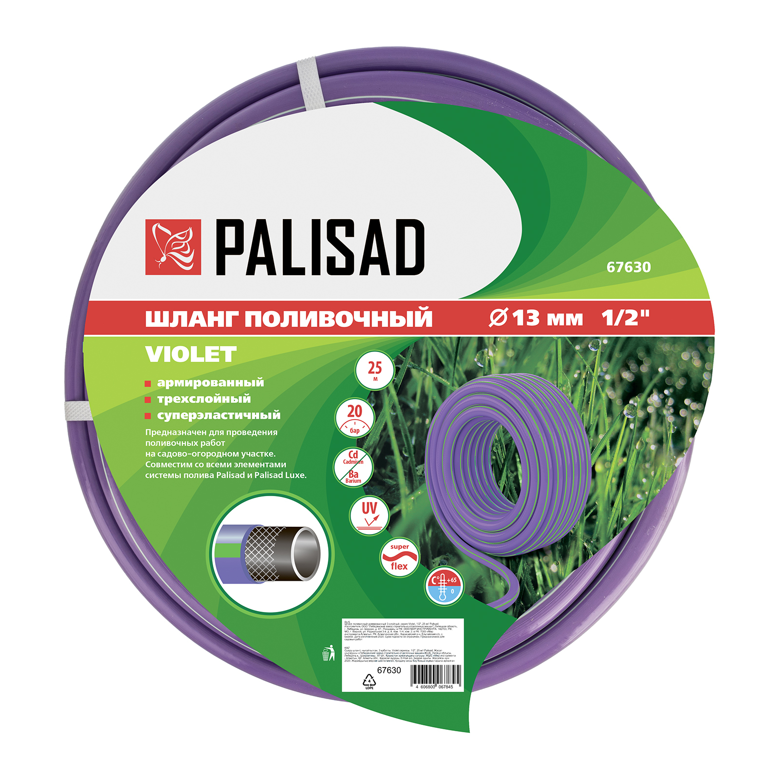 Шланг поливочный армированный, 3-х слойный, серия Violet, 1/2", 25 м Palisad