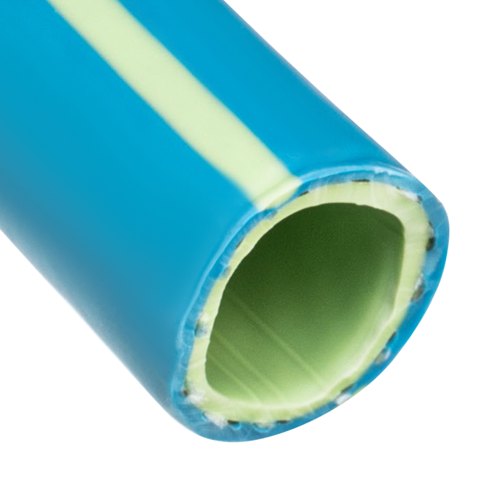 - Прочность и долговечность — шланг из ТЭП, армированный суперпрочной полиэстерной нитью плотностью 93 ТЭКС, устойчив к повышенным нагрузкам на изгиб, скручиваниям и обладает высокой морозоустойчивостью.