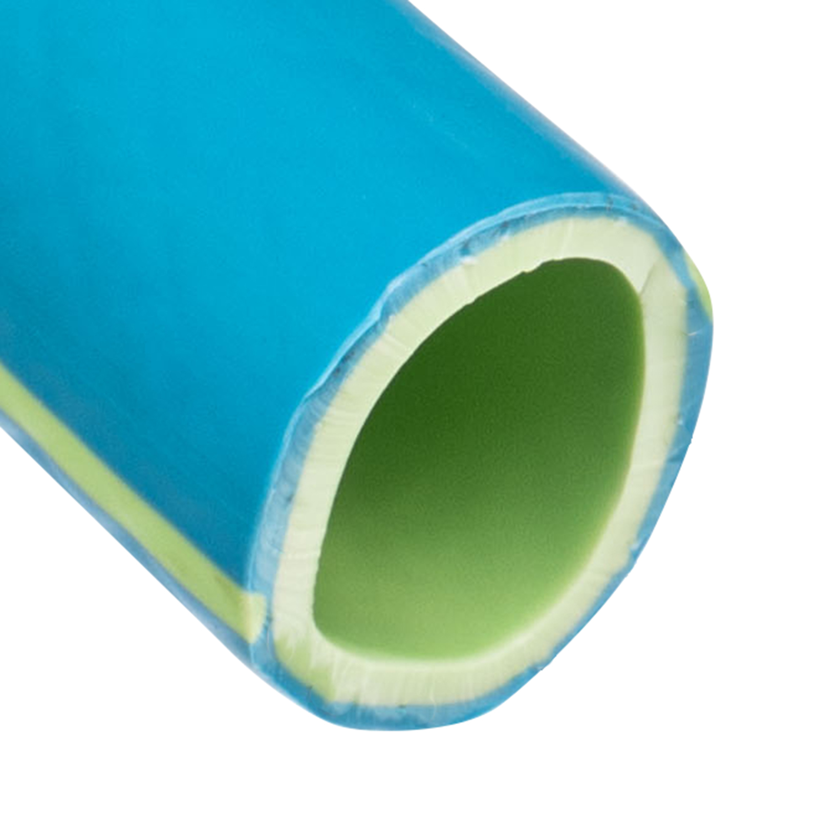 - Высокие эксплуатационные характеристики — толщина стенок составляет 2,6 мм, поэтому шланг выдерживает разрывные нагрузки до 6 бар.