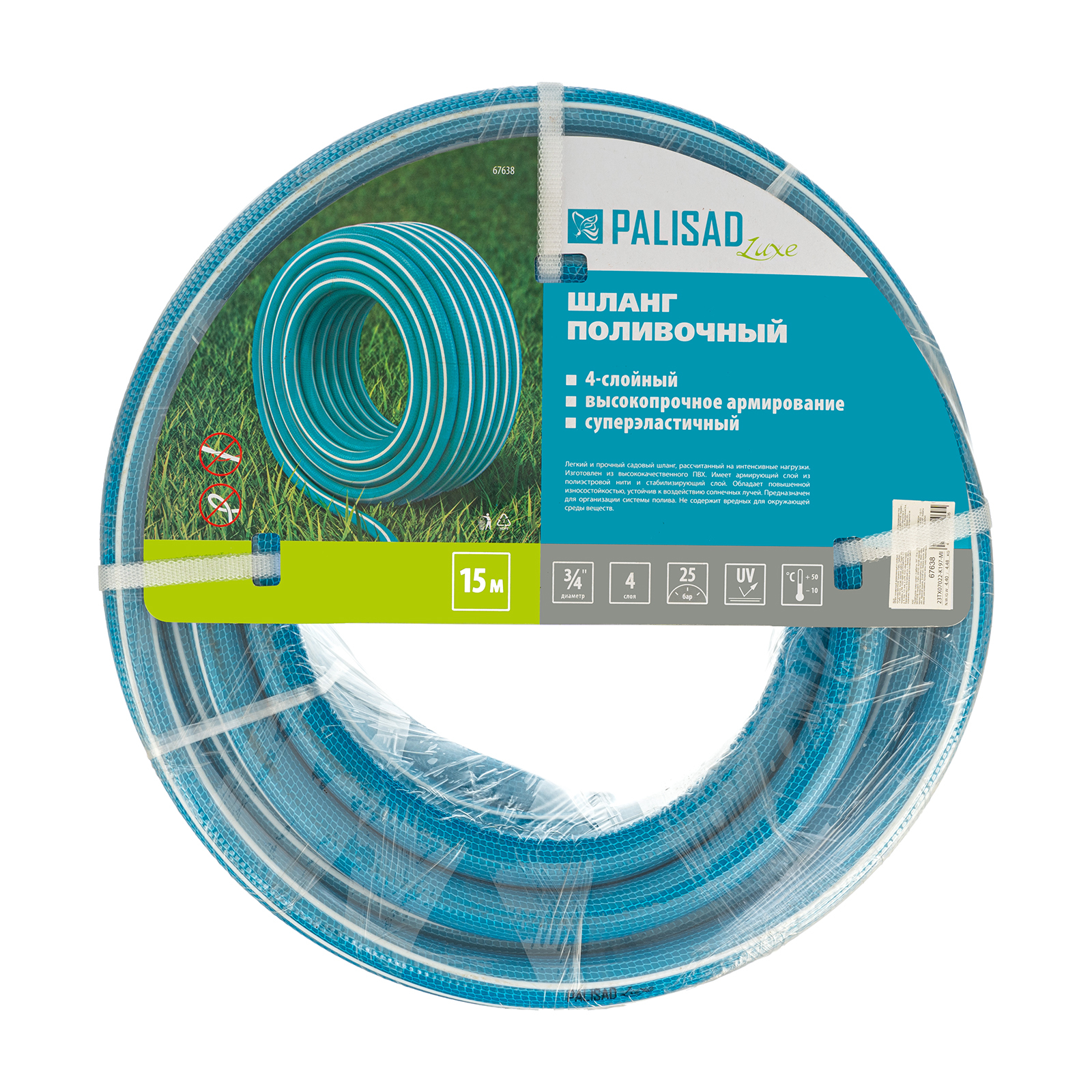 <p>Армированный 4-слойный поливочный шланг Palisad LUXE 67638 длиной 15 м и диаметром 3/4 дюйма — это незаменимое приспособление для владельцев садово-огородных участков. Он позволяет организовать автоматическую систему орошения или осуществлять его вручную.</p><h2>Преимущества</h2><ul><li>Прочность и надежность — шланг армирован суперпрочной полиэстерной нитью.</li><li>Высокий ресурс — за счет инновационного плетения нити нагрузка на шланг распределяется равномерно.</li><li>Защитное покрытие — изделие устойчиво к УФ-лучам и механическим воздействиям.</li><li>Возможность интенсивного использования — шланг из высококачественного ПВХ выдерживает высокие нагрузки.</li><li>Безопасность — армированный шланг выполнен из экологичных материалов, которые не вредят окружающей среде.</li><li>Универсальность — шланг устанавливается на любые элементы систем полива Palisad.</li></ul>