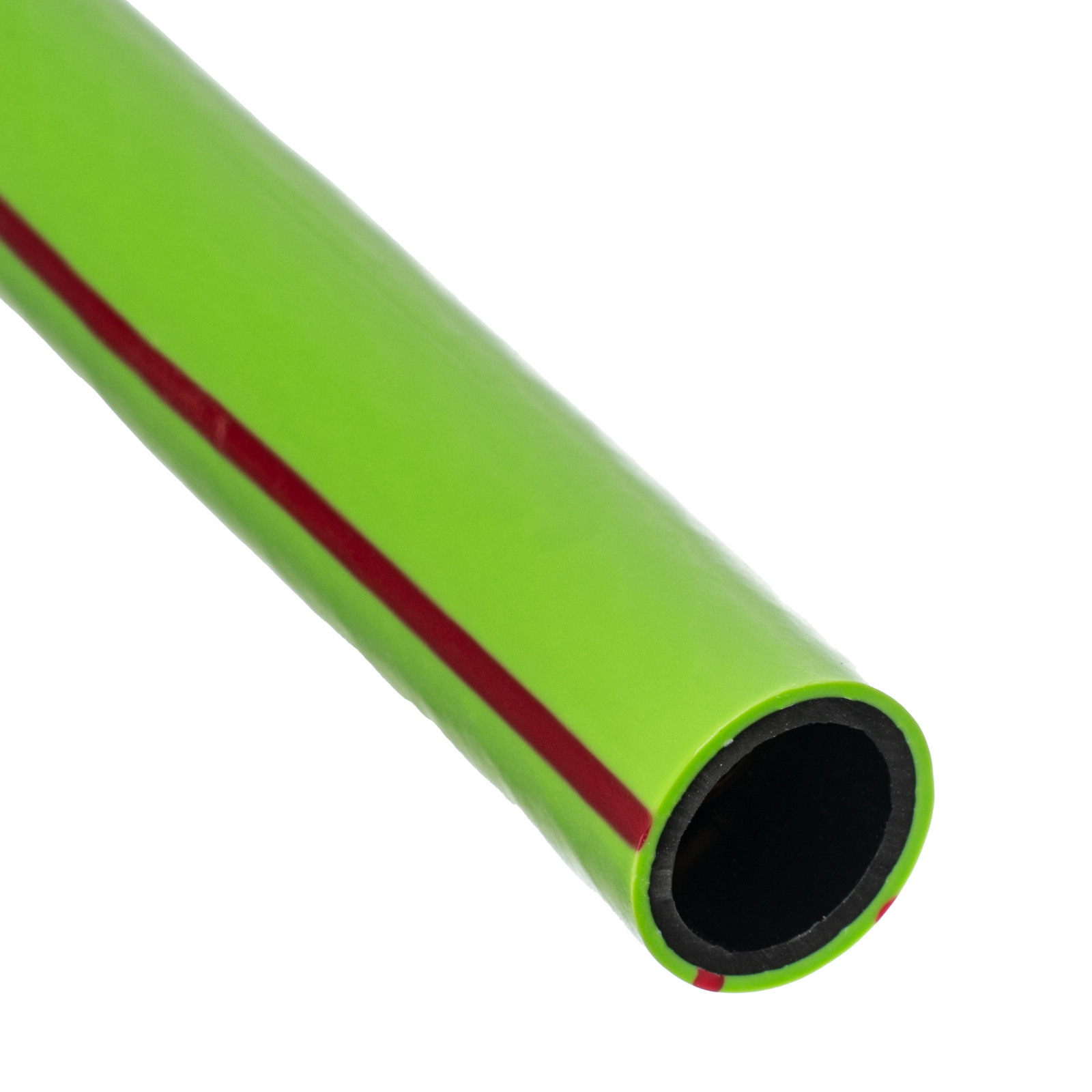 - Прочность — шланг выполнен из высококачественного ПВХ, полимерное покрытие защищает от УФ-лучей и механических повреждений.