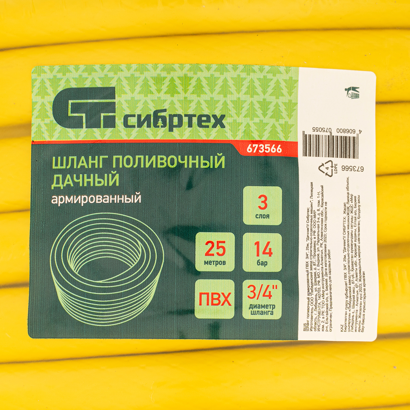 Шланг поливочный армированный, ПВХ, 3/4", 25 м, "Дачник" Сибртех