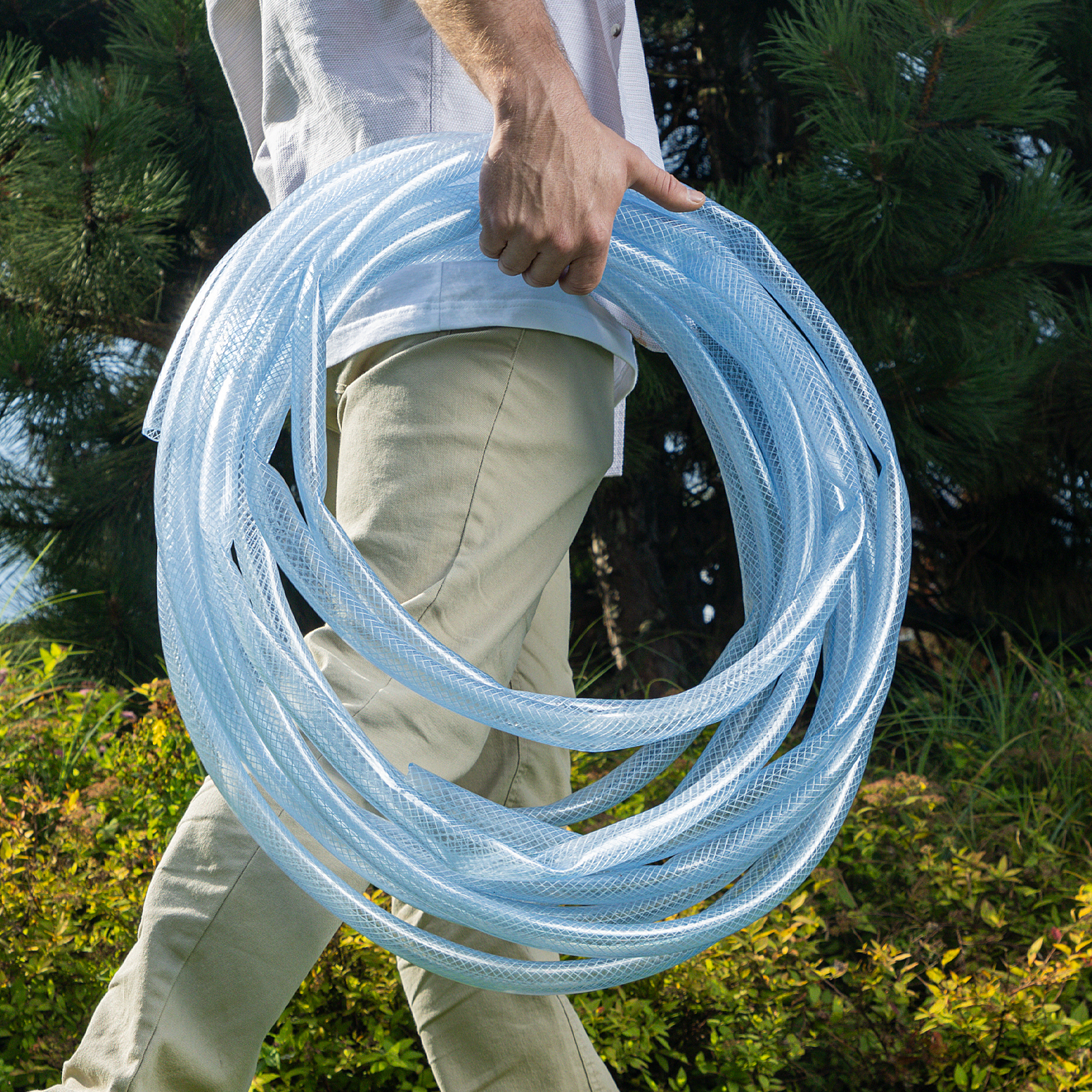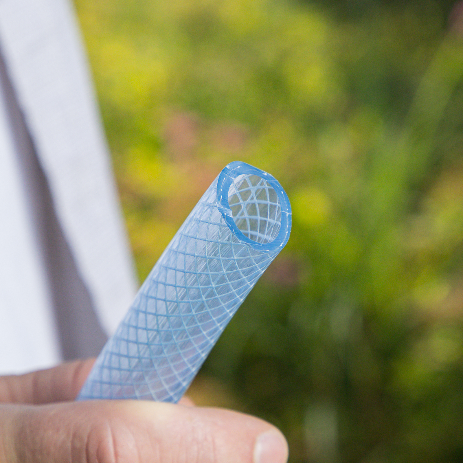 - Повышенная прочность — шланг изготовлен из поливинилхлорида (ПВХ) и армирован нитью из полиэстера.