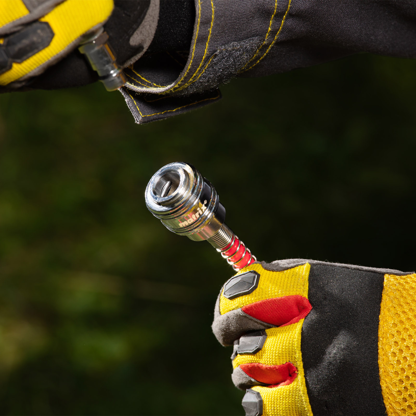 - Быстроразъемное соединение ускоряет подключение пневмоинструментов, что экономит время и силы мастера.