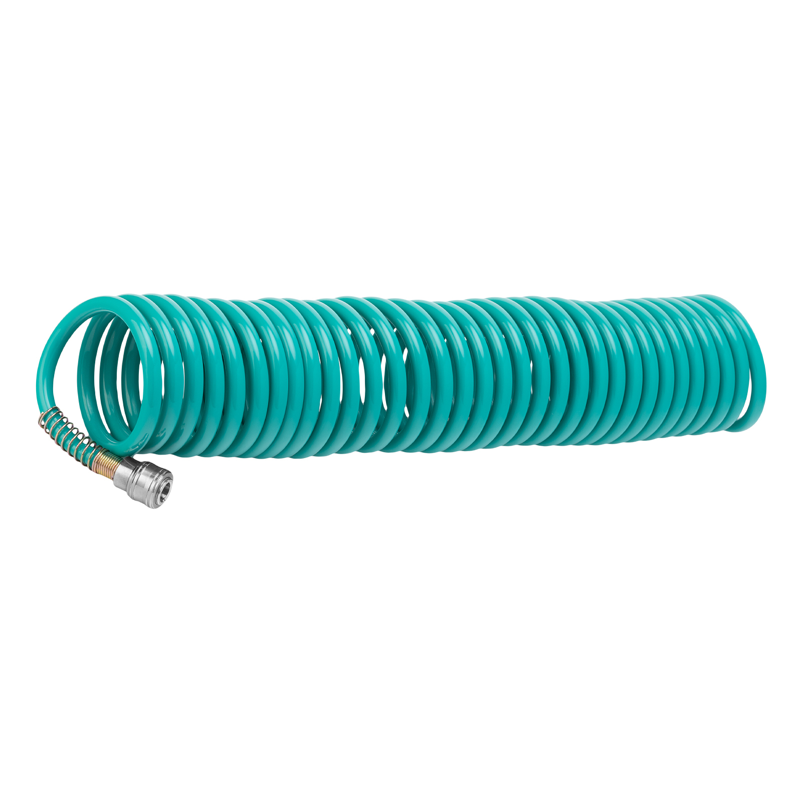 Спиральный воздушный шланг Stels 57015 диаметром 8 х 12 мм, длиной 10 м, с быстросъемными соединениями, выдерживает давление до 18 бар и предназначен для подключения пневматических инструментов к источнику сжатого воздуха. Изготовленный из легкого и устойчивого к воздействию агрессивных сред полиэтилена, шланг (рукав) не боится контактов со строительными смесями, маслом, бензином, а работа с ним не вызывает ощущение усталости. Пригодится во время строительства, ремонтно-отделочных работ, а также будет полезен в мастерской или гараже.