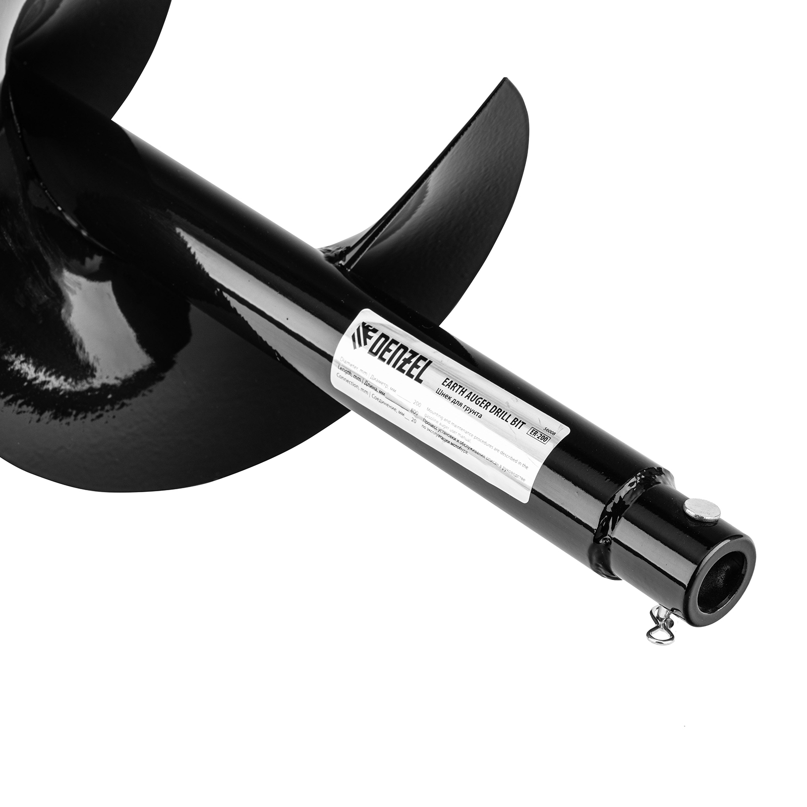 Шнек для грунта Denzel ER-200 56008 длиной 800 мм с диаметром соединения 20 мм, со съемным ножом, устанавливается на мотобур и используется для бурения отверстий диаметром 200 мм. Инструмент пригодится для установки столбчатых опор, формирования лунок для посадки растений и бурения отверстий в грунте различной плотности при выполнении других задач.