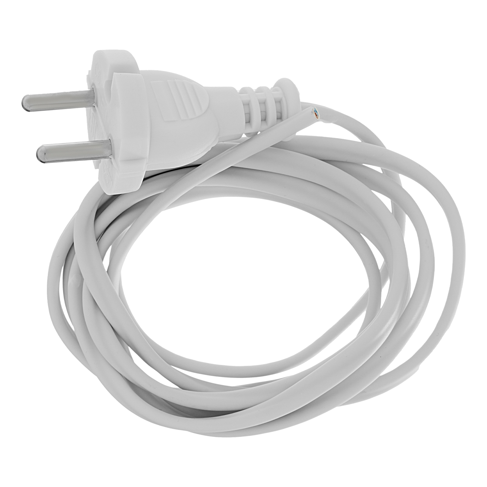 Электрический соединительный шнур Сибртех 96010 белого цвета, длиной 1,7 м, имеет класс воспламеняемости V-1 и позволяет подключить к источнику энергии настольную лампу и другие электроприборы мощностью до 120 Вт. Предназначен для замены вышедшего из строя провода, подходит для бытового применения.